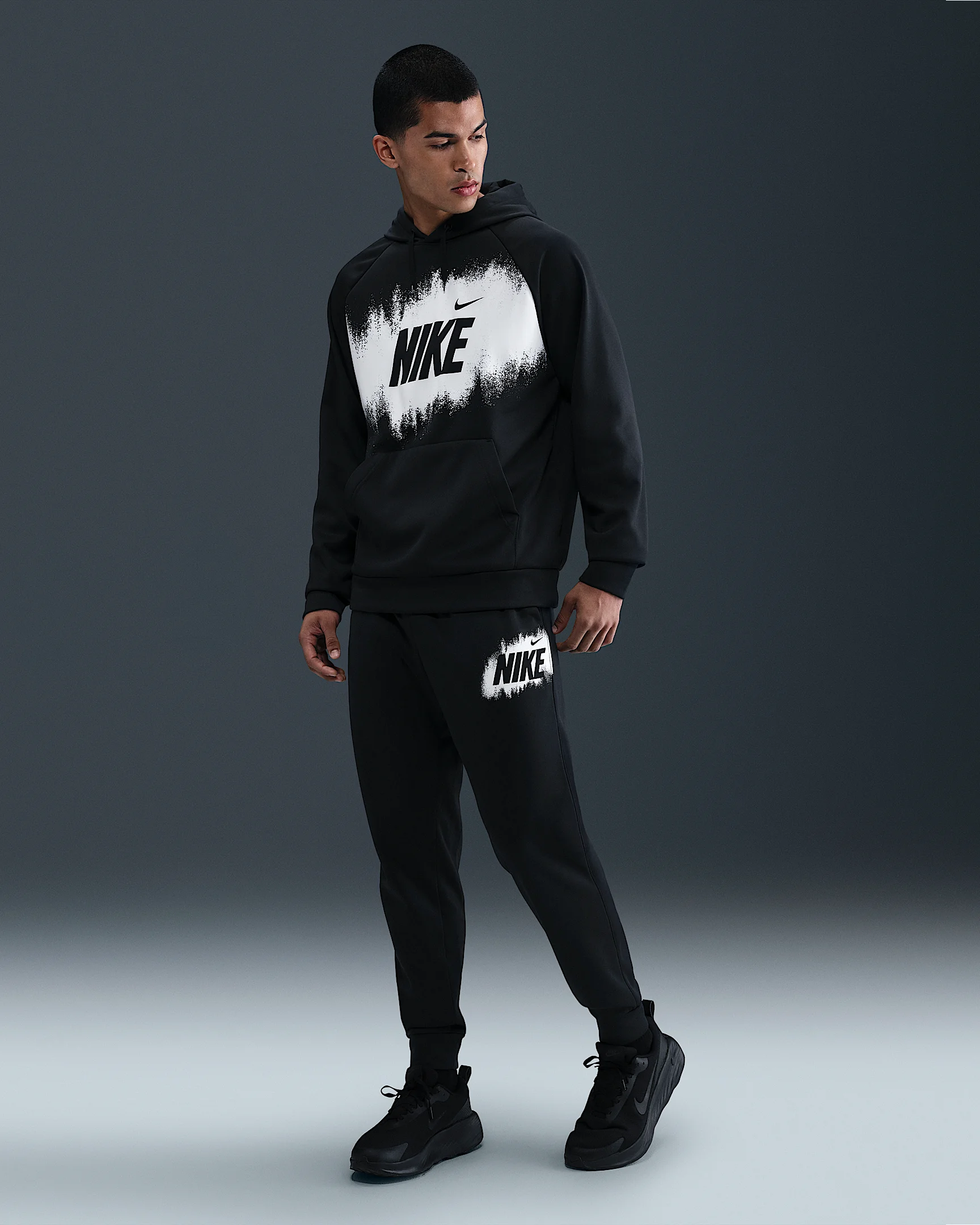 These Therma-FIT joggers are built for cold-weather performance. With a brushed interior and light stretch in the fabric, they help you stay warm and comfortable during training. Benefits - Nike Therma-FIT technology helps manage your body’s natural heat to help keep you warm in cold-weather conditions. - Elastic waistband with drawcord provide a secure fit. Product Details - Ribbed elastic cuffs - Side pockets - Zippered pocket at the back right hip - Embroidered Swoosh logo - 100% polyester - Machine wash - Imported - Shown: Black - Style: HV4065-010 SIZE & FIT Model is wearing size M and is 6′1″185cm Standard fit: easy and traditional 78 length: hits at ankle