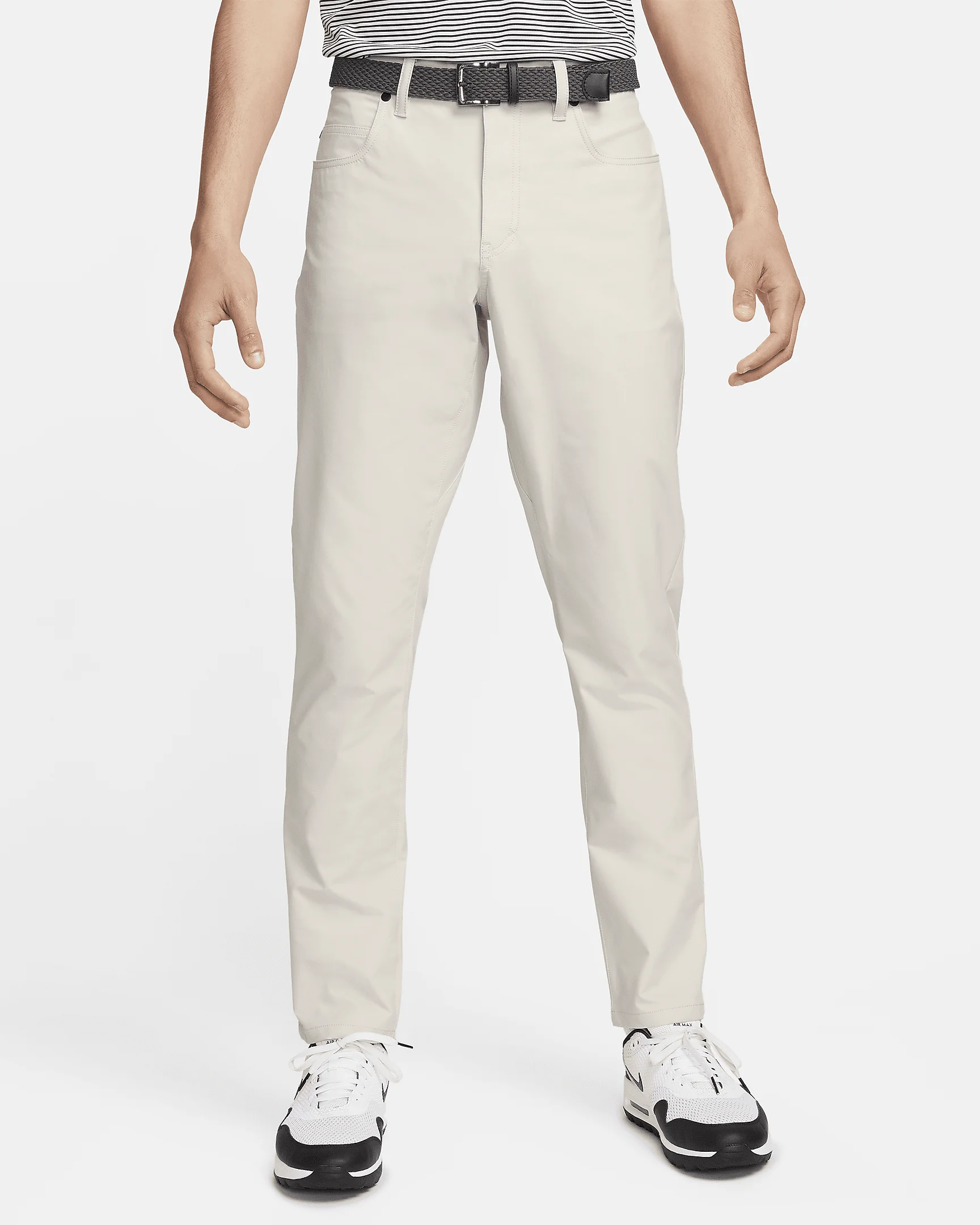 From driving range to course to clubhouse, the Nike Tour pants provide comfort and performance you can take anywhere. A slim fit with a smooth, stretchy feel helps give you the confidence to swing your best. They're equipped with 5 pockets for your tees, scorecard and glove to keep you prepared when you're next up on the box. Product Details - Body: 100% polyester. Pocket bags: 100% polyester - Machine wash - Imported - Shown: Light Bone/Black - Style: FD5615-072 SIZE & FIT Model is wearing size 3232 and is 6′2″188cm Sm fit: sleek and tailored