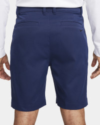 From driving range to course to clubhouse, do it all in the Nike Tour Chino Golf Shorts. Cut with a relaxed and streamlined fit, they help you feel confident through each swing with stretchy, sweat-wicking woven fabric. Got a scorecard, yardage book and tees? There's plenty of pockets for your essentials. Benefits - Stretch-woven fabric helps you get the most out of your swing. - Water-repellent finish helps keep you dry in wet weather. - Elastic waistband with a snap-hook-and-bar closure provides a snug fit. - Mesh-lined pockets hold your golf essentials like a scorecard, pen and yardage book. Product Details - 8" inseam - Body and pocket bags: 100% polyester. - Machine wash - Imported - Shown: Midnight Navy/Black - Style: FD5721-410 SIZE & FIT Model is wearing size 32 and is 5′11″180cm Standard fit: easy and traditional Fits small; we recommend ordering a size up