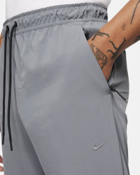 Built for running, training and yoga, the Unlimited collection helps keep you moving throughout the year, thanks to premium materials and innovative features. These tapered fit pants have plenty of stretch and wick sweat to keep you feeling cool and dry. Take your keys, cash and valuables to and from the gym with our 3 zippered pockets, and let your focus be on reaching the goals you set today. Benefits - Standard fit with a tapered leg design. - Nike Dri-FIT helps keep the sweat away. - Total of 3 zippered pockets give easy-to-reach storage. - Elastic waistband provides a secure fit without digging in. - Woven fabric stretches in all directions for easy movement. Product Details - Drawcord - Body: 87% polyester/ 13% spandex. Pocket Bags: 100% polyester - Machine wash - Imported - Not intended for use as Personal Protective Equipment (PPE) - Shown: Smoke Grey/Black/Smoke Grey - Style: FB7546-084 SIZE & FIT Model is wearing size M and is 6′1″185cm Standard fit: easy and traditional Fits small; we recommend ordering a size up