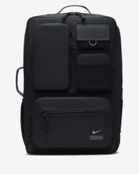 The Nike Utility Elite Backpack keeps your gear close, secure and organized while commuting to and from training sessions. Cushioned straps give you comfort on the go, and the pack splays open for easy access to your necessities. Product Details - Dimensions: 19" H x 13" W x 6" D - 32 L - Zippered, plush-lined pocket on upper back - Body: 91% polyester/9% nylon. Lining: 100% polyester. - Spot clean - Imported - Shown: Black/Black/Enigma Stone - Style: CK2656-010