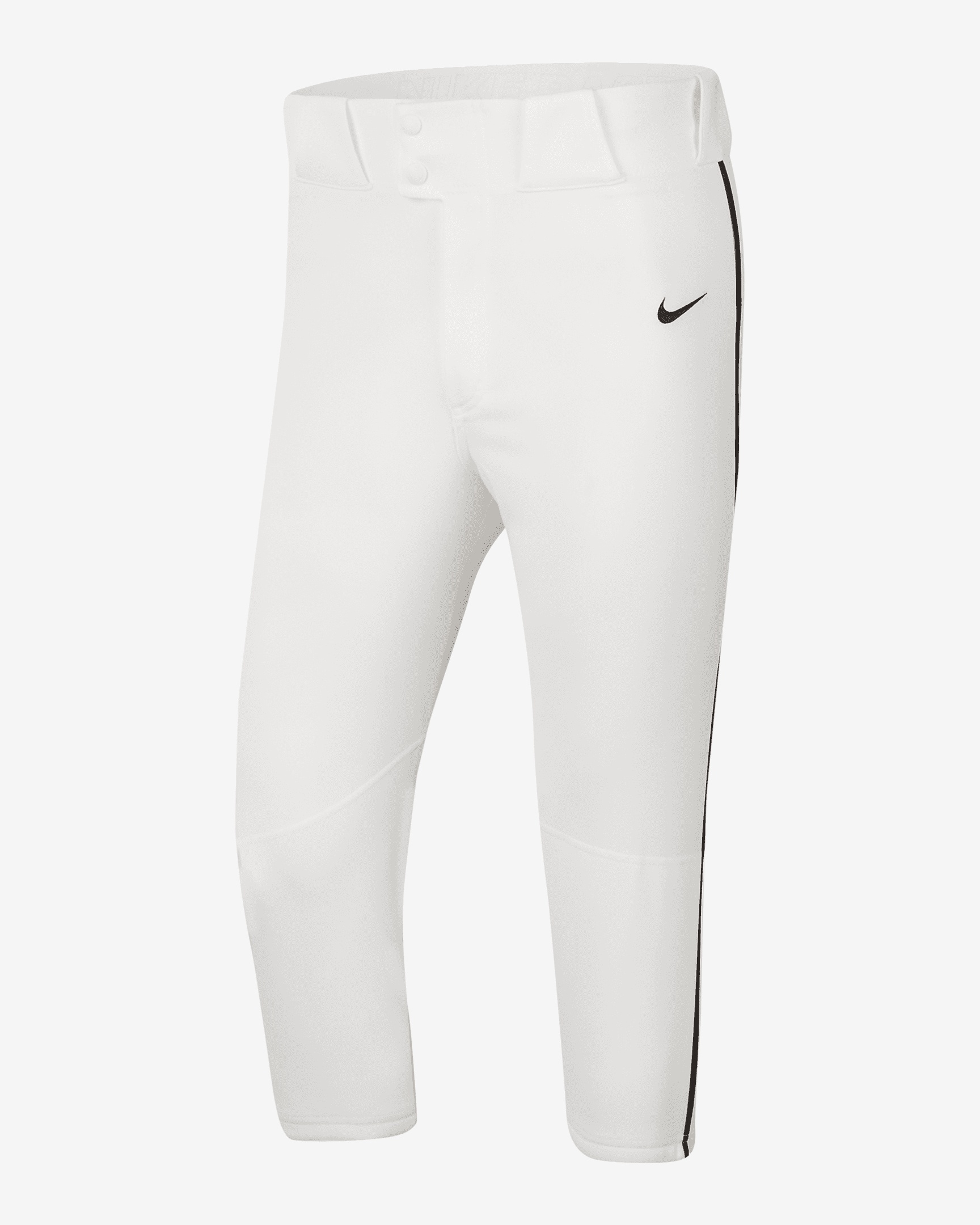 The Nike Vapor Select Pants outfit you for competition with sweat-wicking technology and breathable mesh in all the right places. Grip inside the waist helps keep your uniform in place during all-out play, and a high-cut style offers a classic look. Product Details - Slim fit for a tailored feel - Wide belt loops - Back pockets - Snap closure with zip fly - Embroidered Swoosh design - 100% polyester - Machine wash - Imported - Shown: Team White/Team Black/Team Black - Style: BQ6437-100 SIZE & FIT Sm fit: sleek and tailored