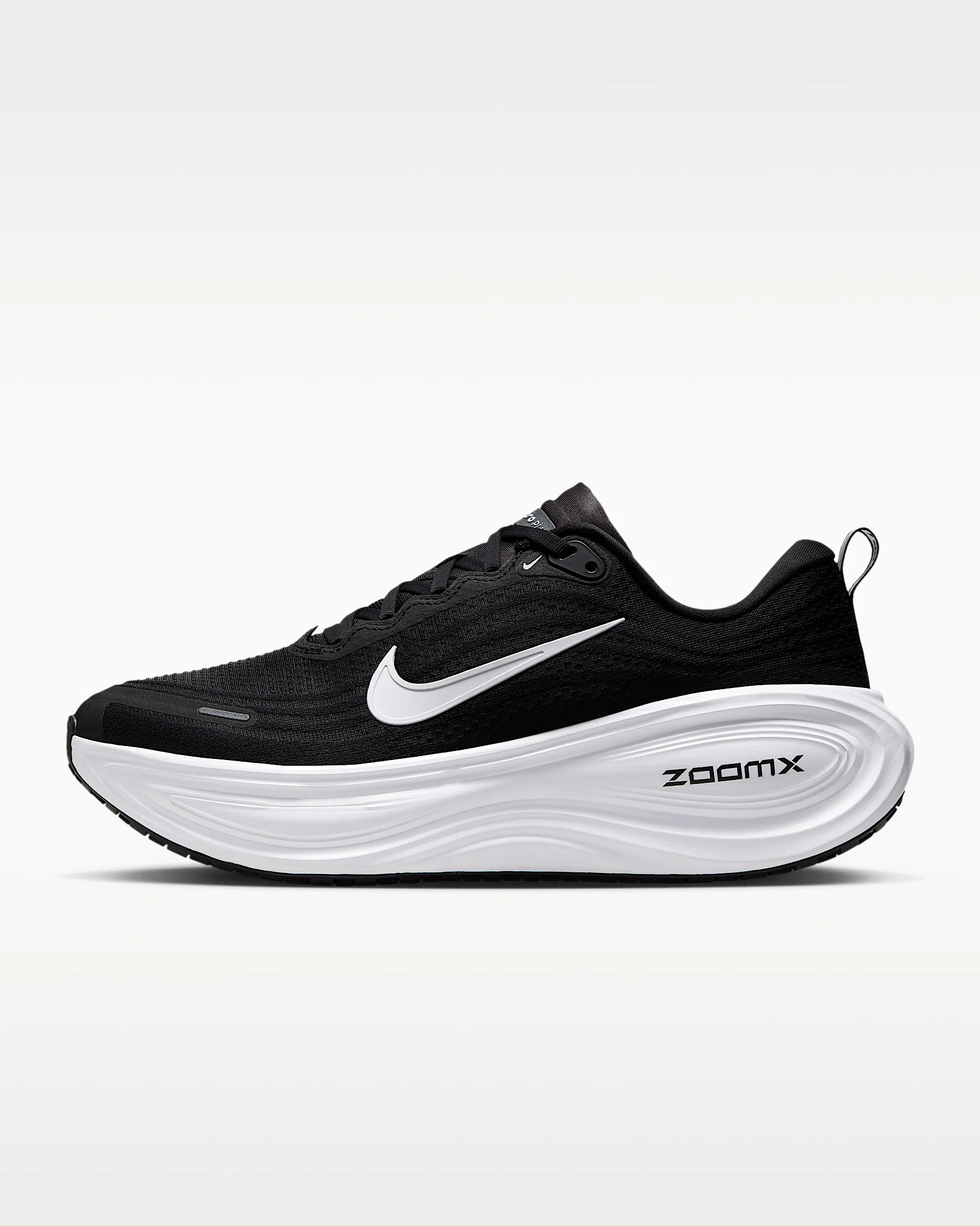 Take maximum cushioning to the next level with the Vomero Plus. It provides an ultra-comfortable ride for every day runs thanks to a mountainous stack of full-length ZoomX foam, the most responsive foam in the industry. Plus, the engineered mesh upper is made of soft, breathable yarn for a comfortable fit. Product Details - Weight: Approx. 273g/9.6oz (Men's US 10) - Heel-to-toe drop: 10mm - Webbed lace loops for an adjustable fit - Reflective details - Not intended for use as Personal Protective Equipment (PPE) - Shown: Black/Cool Grey/Metallic Dark Grey/White - Style: HV8150-002
