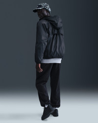 Heritage style meets weather-ready tech. This Windrunner jacket is crafted with a crisp, woven taffeta fabric that's finished with Nike Storm-FIT tech to help resist wind and rain. A mesh lining and rear vent offer a breathable feel while a roomy fit makes it the perfect layering piece. Benefits - Nike Storm-FIT technology resists elements like wind and water to help keep you comfortable in harsh weather conditions. - Chevron design lines are inspired by the Windrunner track jacket from 1978, which is defined by its single and deceptively simple design cue. Product Details - Embroidered logo - Internal Windrunner storytelling label - Two-way zipper - Hood with drawcord - Zippered hand pockets - Elastic hem and cuffs - Body: 100% polyester. Lining: 100% polyester. - Machine wash - Imported - Shown: Black/White - Style: HV8369-010 SIZE & FIT Model is wearing size M and is 6′1″184cm Loose fit: roomy and relaxed