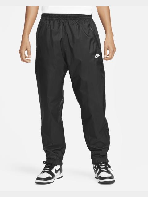 Since 1978, the Windrunner jacket has been celebrated for its bold simplicity. Now, you can pair this iconic jacket with matching pants for a complete, uniform look. They're made with crisp woven fabric for a smooth feel, and lined with mesh for air-cooled comfort. Benefits - Chevron design lines are inspired by the Windrunner track jacket from 1978, which is defined by its single and deceptively simple design cue. - Smooth woven fabric feels crisp and lightweight, plus it's lined with cool mesh for airflow. - Soft elastic waistband and cuffs keep them casual and comfortable all day. - Zippered hand pockets and back pocket give you secure spots to store your essentials on the go. Product Details - Embroidered Futura logo at left thigh - Body/Lining: 100% polyester - Machine wash - Imported - Shown: Black/Black/White - Style: DX0653-011 SIZE & FIT Model is wearing size M and is 5'11"180cm Big & Tall model is wearing size 2XL and is 6'5"196cm Standard fit: easy and traditional