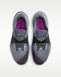 Power your cross-training potential with the Metcon 10. It optimizes stability for your heavier lifts with an ultra-strong Hyperlift plate and levels up mobility with responsive ReactX foam. With increased energy return and a lighter weight than the Metcon 9, it helps you conquer any movement your workout demands. More Benefits - Open-holed engineered mesh provides breathability. - Midsole rubber wrap is more tuned, lighter and less bulky than the Metcon 9. - Tough plastic heel clip provides durability for handstand push-ups. Product Details - Shown: Wolf Grey/Medium Ash/Vivid Purple/Metallic Silver - Style: HJ1875-003