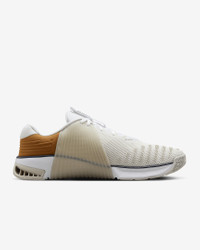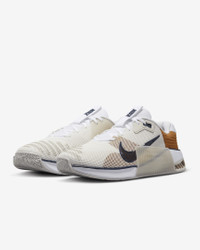 Whatever your "why" is for working out, the Metcon 9 makes it all worth it. We improved on the 8 with a larger Hyperlift plate and added rubber rope wrap. Sworn by some of the greatest athletes in the world, intended for lifters, cross trainers, go-getters and it’s still the gold standard that delivers day after day. More Benefits - Full rubber outsole provides durable traction for dynamic movements like cleans and walking lunges. - Breathable textile has a haptic print, which creates a 3-D effect that adds durability and texture, helping make it easier to keep your shoes clean. Also, it sports flexible, durable support in the toe area, so that when your toes splay when lifting heavy weights, it won’t feel restrictive. Product Details - Shown: White/Light Bone/Limestone/Midnight Navy - Style: DZ2616-100