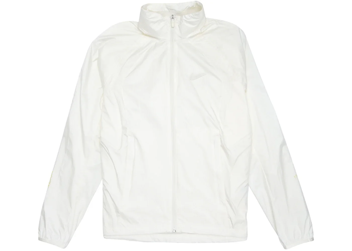 The Nike x Drake NOCTA Golf Track is a golf-inspired Jacket Sail from Drake and Nike. This track jacket with a funnel collar is made of lightweight nylon and is designed to be worn both on and off the course. It has a breathable back mesh panel and a full zip fastening to keep out the elements. It features tonal branding all over and a drawstring hem for the ideal fit. It has elasticized cuffs and two side pockets. It comes in white color. Nike x Drake NOCTA Golf Track Jacket Sail was released in September 2021 with a retail price of $34 . - Season FW21 - Color Sail - Release Date 2021-09-23 - Style DM7295-133 - Retail Price 200 - Featured false