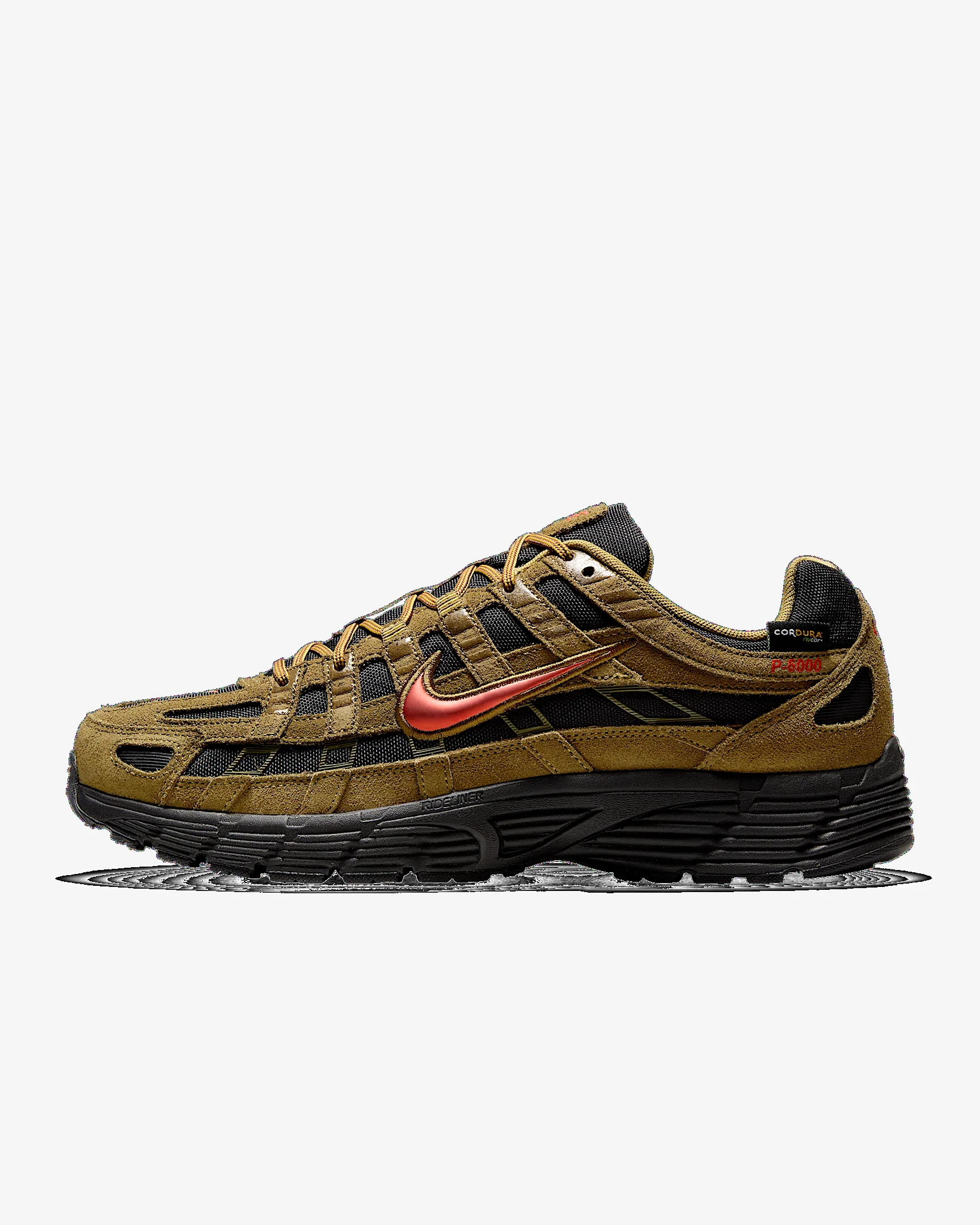 A mash-up of Pegasus sneakers past, the Nike P-6000 takes early 2000s running style to modern heights. This rendition is updated with CORDURA® fabric for extra durability. Plus, its foam cushioning adds a track-inspired stance and unbelievable cushioning. Benefits - When it comes to performance, abrasion-resistant CORDURA® fabric can take whatever you throw at it. - Upper combines leather, suede and CORDURA® for a layered look that lasts. - Throwback design draws on Nike Pegasus 25 and Nike Pegasus 2006. - Cushioned insole delivers comfortable underfoot feel. - Rubber outsole adds durable traction. Product Details - Foam midsole - Rubber outsole - Shown: Olive Flak/Black/Quantum Moss/Picante Red - Style: IH0946-300