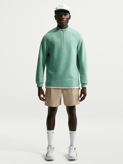 Ready for today's game, these shorts use a stretchy, sweat-wicking fabric to help keep you comfortable throughout your round. Golf-ready details keep all the small stuff organized while classic lines and a subtle drape give them a clean look ready for everyday wear. Benefits - Nike Dri-FIT technology moves sweat away from your skin for quicker evaporation, helping you stay dry and comfortable. - Woven lined pockets add a premium feel and help stop tees and ball markers from snagging. - Built-in storage keeps your tees handy, so even if you lose your swing, you can always find a tee. - Premium piping finishes and a Nike Shield logo on the back right pocket provide a premium look. - The stretch waistband is lined with gripper tape for a snug fit that helps tucked shirts stay put. Product Details - 4-way stretch knit fabric - 6.5" inseam - Back pockets - Belt loops - Body: 100% polyester. Pockets: 86% polyester/14% spandex. - Machine wash - Imported - Shown: Steam/Black/Black - Style: IB0672-006 SIZE & FIT Standard fit: easy and traditional