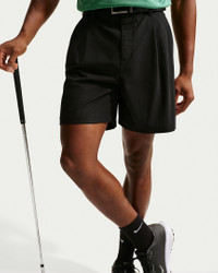 Ready for today's game, these shorts use a stretchy, sweat-wicking fabric to help keep you comfortable throughout your round. Golf-ready details keep all the small stuff organized while classic lines and a subtle drape give them a clean look ready for everyday wear. Benefits - Nike Dri-FIT technology moves sweat away from your skin for quicker evaporation, helping you stay dry and comfortable. - Woven lined pockets add a premium feel and help stop tees and ball markers from snagging. - Built-in storage keeps your tees handy, so even if you lose your swing, you can always find a tee. - Premium piping finishes and a Nike Shield logo on the back right pocket provide a premium look. - The stretch waistband is lined with gripper tape for a snug fit that helps tucked shirts stay put. Product Details - 4-way stretch knit fabric - 6.5" inseam - Back pockets - Belt loops - Body: 100% polyester. Pockets: 86% polyester/14% spandex. - Machine wash - Imported - Shown: Black/Black/Black - Style: IB0672-010 SIZE & FIT Model is wearing size M and is 5′11″179cm Standard fit: easy and traditional