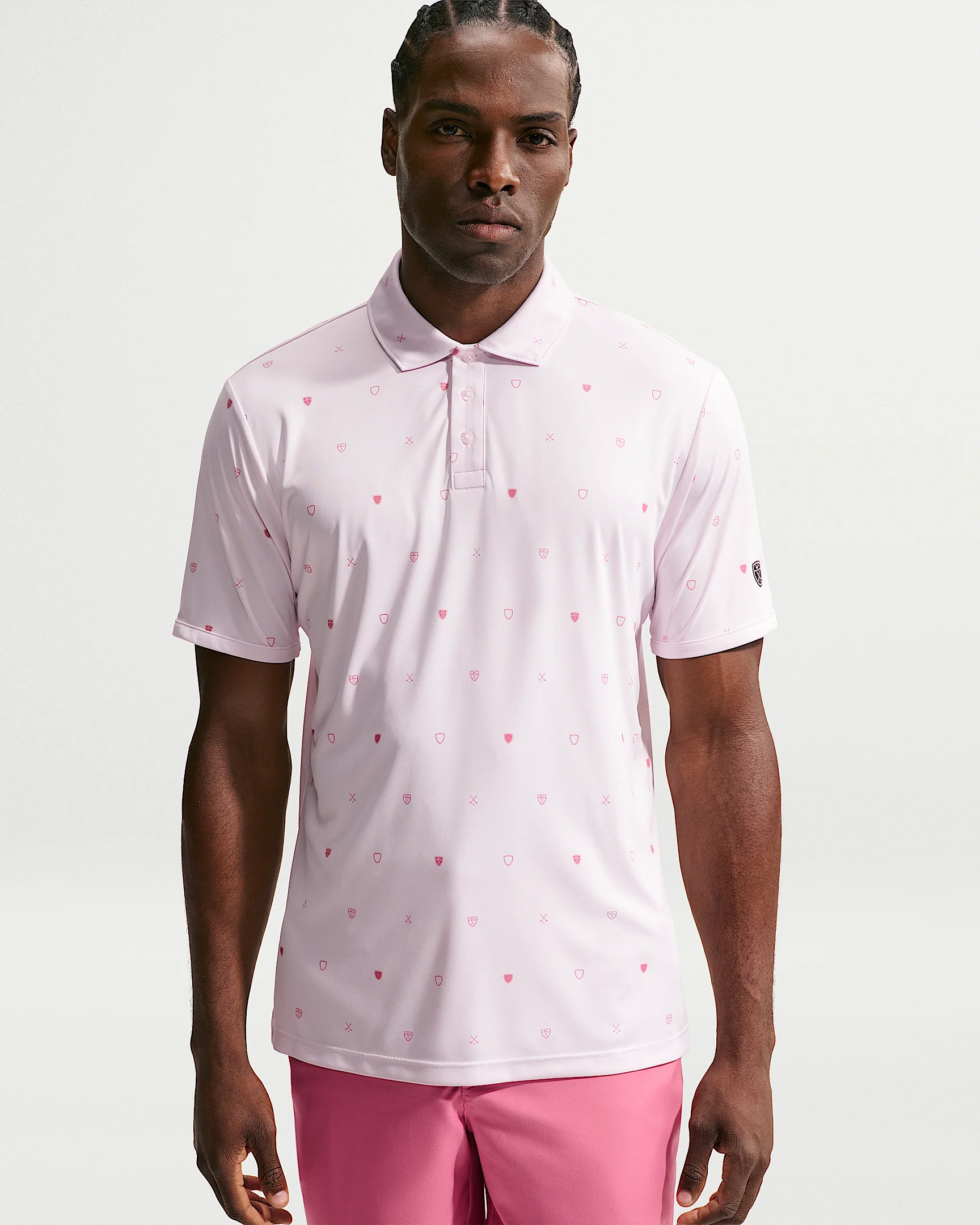 The double-knit fabric of this polo feels durable but also lightweight. We combined it with our sweat-wicking tech to help keep you cool on the course. Benefits - Nike Dri-FIT technology moves sweat away from your skin for quicker evaporation, helping you stay dry and comfortable. - Knit fabric has a brushed feel for added softness. Product Details - 3-button placket - Embroidered Nike Golf shield logo on left sleeve - 100% polyester - Machine wash - Imported - Shown: Pearl Pink/Peony - Style: IB0227-664 SIZE & FIT Model is wearing size 32 and is 6′4″192cm Standard fit: easy and traditional