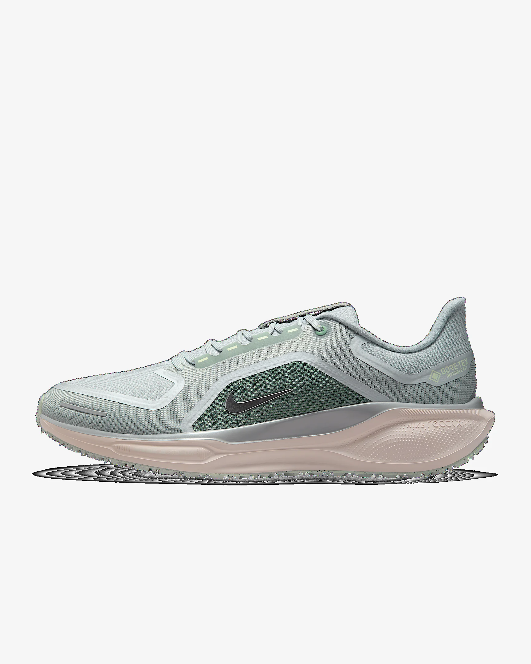 Responsive cushioning in the winterized Pegasus provides an energized ride for wet-weather road running. Experience lighter-weight energy return with dual Air Zoom units and a ReactX foam midsole. Plus, a waterproof GORE-TEX upper and reflective details throughout help you comfortably take on the elements. Product Details - Reflective GORE-TEX logo and Swoosh logo - Reflective graphics and overlays - Not intended for use as Personal Protective Equipment (PPE) - Weight: Approx. 297g/10.5oz (Men's US 10) - Heel-to-toe drop: 10mm - MR-10 Last - Our best, most consistent fit (same as Pegasus 40) - Shown: Light Pumice/Pure Platinum/Silt Red/Metallic Silver - Style: FQ1356-007