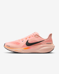 Responsive cushioning in the Pegasus provides an energized ride for everyday road running. Experience lighter-weight energy return with dual Air Zoom units and a ReactX foam midsole. Plus, improved engineered mesh on the upper decreases weight and increases breathability. More Benefits - ReactX foam midsole - Lighter, more breathable engineered mesh upper Product Details - Weight: Approx. 297g/10.5oz (Men's US 10) - Heel-to-toe drop: 10mm - MR-10 Last - Our best, most consistent fit (same as Pegasus 40) - Reflective details - Not intended for use as Personal Protective Equipment (PPE) - Shown: Crimson Tint/Washed Coral/Total Orange/Gridiron - Style: FD2722-801