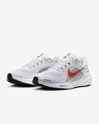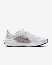 Responsive cushioning in the Pegasus provides an energized ride for everyday road running. Experience lighter-weight energy return with dual Air Zoom units and a ReactX foam midsole. Plus, improved engineered mesh on the upper decreases weight and increases breathability. Benefits - Upgraded breathable engineered mesh upper - ReactX foam midsole surrounds forefoot and heel Air Zoom units for an energized ride. - Signature waffle-inspired rubber outsole for traction and flexibility - Plush collar tongue and sockliner for a secure and comfortable fit - What's new? All-new ReactX foam midsole is 13% more responsive than previous React technology. - Crafted for performance and planet, ReactX foam is engineered to reduce its carbon footprint by at least 43% in a pair of midsoles due to reduced manufacturing process energy compared to prior React foam. The carbon footprint of ReactX is based on cradle-to-gate assessment reviewed by PRe Sustainability B.V and Intertek China. Other midsole components such as airbags, plates or other foam formulations were not considered. Product Details - Weight: Approx. 297 g/10.4 oz (Men's US 10) - Heel-to-toe drop: 10 mm - MR-10 Last - Our best, most consistent fit (same as Pegasus 40) - Not intended for use as Personal Protective Equipment (PPE) - Shown: White/Wolf Grey/Black/Picante Red - Style: FD2722-108