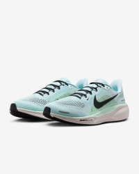 Responsive cushioning in the Pegasus provides an energized ride for everyday road running. Experience lighter-weight energy return with dual Air Zoom units and a ReactX foam midsole. Plus, improved engineered mesh on the upper decreases weight and increases breathability. More Benefits - ReactX foam midsole - Lighter, more breathable engineered mesh upper Product Details - Weight: Approx. 297g/10.5oz (Men's US 10) - Heel-to-toe drop: 10mm - MR-10 Last - Our best, most consistent fit (same as Pegasus 40) - Reflective details - Not intended for use as Personal Protective Equipment (PPE) - Shown: Glacier Ice/Mint Foam/Hyper Pink/Black - Style: FD2722-406