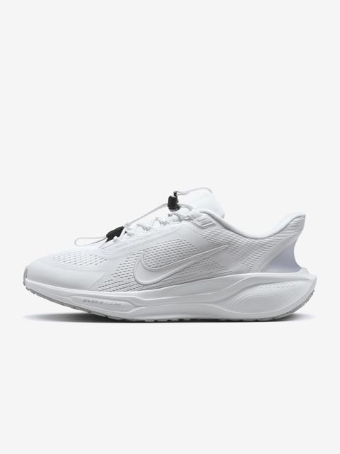 Responsive cushioning in the Pegasus provides an energized ride for everyday road running. Experience lighter-weight energy return with dual Air Zoom units and a ReactX foam midsole. Plus, improved engineered mesh on the upper decreases weight and increases breathability. Benefits - Engineered toggle gives you an adjustable fit - Upgraded breathable engineered mesh upper - ReactX foam midsole surrounds forefoot and heel Air Zoom units for an energized ride. - Signature waffle-inspired rubber outsole for traction and flexibility. - Plush collar tongue and sockliner for a secure and comfortable fit. - What's new? All-new ReactX foam midsole is 13% more responsive than previous React technology. - Crafted for performance and planet, ReactX foam is engineered to reduce its carbon footprint by at least 43% in a pair of midsoles due to reduced manufacturing process energy compared to prior React foam. The carbon footprint of ReactX is based on cradle-to-gate assessment reviewed by PRe Sustainability B.V and Intertek China. Other midsole components such as airbags, plates or other foam formulations were not considered. Product Details - Weight: Approx. 312g/ 11.0 oz (Men's US 10) - Heel-to-toe drop: 10mm - Shown: Black/Anthracite/Photon Dust/White - Style: FQ7837-002
