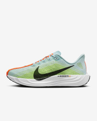 Take responsive cushioning to the next level with the Pegasus Plus. It energizes your ride with full-length, superlight ZoomX foam to give you a high level of energy return for everyday runs. And a stretchy Flyknit upper conforms to your foot for a seamless fit. Benefits - Flyknit on upper has perforations to help reduce the weight of the shoe and make it more breathable. - ZoomX foam midsole offers springy cushioning. - High-abrasion rubber on outsole provides traction. - Midfoot band helps keep you contained. Product Details - Weight: Approx. 245 g/8.6 oz (Men's US 10) - Heel-to-toe drop: 10 mm - Not intended for use as Personal Protective Equipment (PPE) - Shown: Glacier Blue/Light Lemon Twist/Life Lime/Black - Style: FQ7262-400