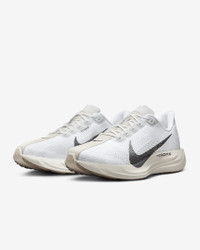 Take responsive cushioning to the next level with the Pegasus Plus. It energizes your ride with full-length, superlight ZoomX foam to give you a high level of energy return for everyday runs. And a stretchy Flyknit upper conforms to your foot for a seamless fit. Benefits - Flyknit on upper has perforations to help reduce the weight of the shoe and make it more breathable. - ZoomX foam midsole offers springy cushioning. - High-abrasion rubber on outsole provides traction. - Midfoot band helps keep you contained. Product Details - Weight: Approx. 245 g/8.6 oz (Men's US 10) - Heel-to-toe drop: 10 mm - Not intended for use as Personal Protective Equipment (PPE) - Shown: White/Sail/Light Orewood Brown/Anthracite - Style: FQ7262-100