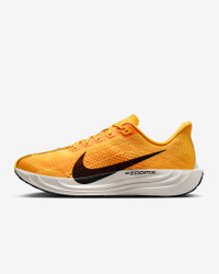 Take responsive cushioning to the next level with the Pegasus Plus. It energizes your ride with full-length, superlight ZoomX foam to give you a high level of energy return for everyday runs. And a stretchy Flyknit upper conforms to your foot for a seamless fit. Product Details - Weight: Approx. 245g/8.6oz (Men's US 10) - Heel-to-toe drop: 10mm - Midfoot band for containment - Reflective details - Not intended for use as Personal Protective Equipment (PPE) - Shown: University Gold/Laser Orange/Sail/Black - Style: IH3258-700