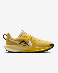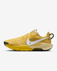 Spread your wings and see what nature brings as you chase earthy paths in the Peg Trail 5. Now equipped with an ultra-responsive ReactX foam midsole, this shoe is a true dual threat raring to cross the divide between dirt and drives. Product Details - Weight: Approx. 300 g/10.5 oz (Men's US 10) - Heel-to-toe drop: 9.5 mm - Reflective details - Not intended for use as Personal Protective Equipment (PPE) - Shown: Saturn Gold/Lightning/Alabaster/White - Style: DV3864-700 SIZE & FIT Fits small; we recommend ordering a half size up