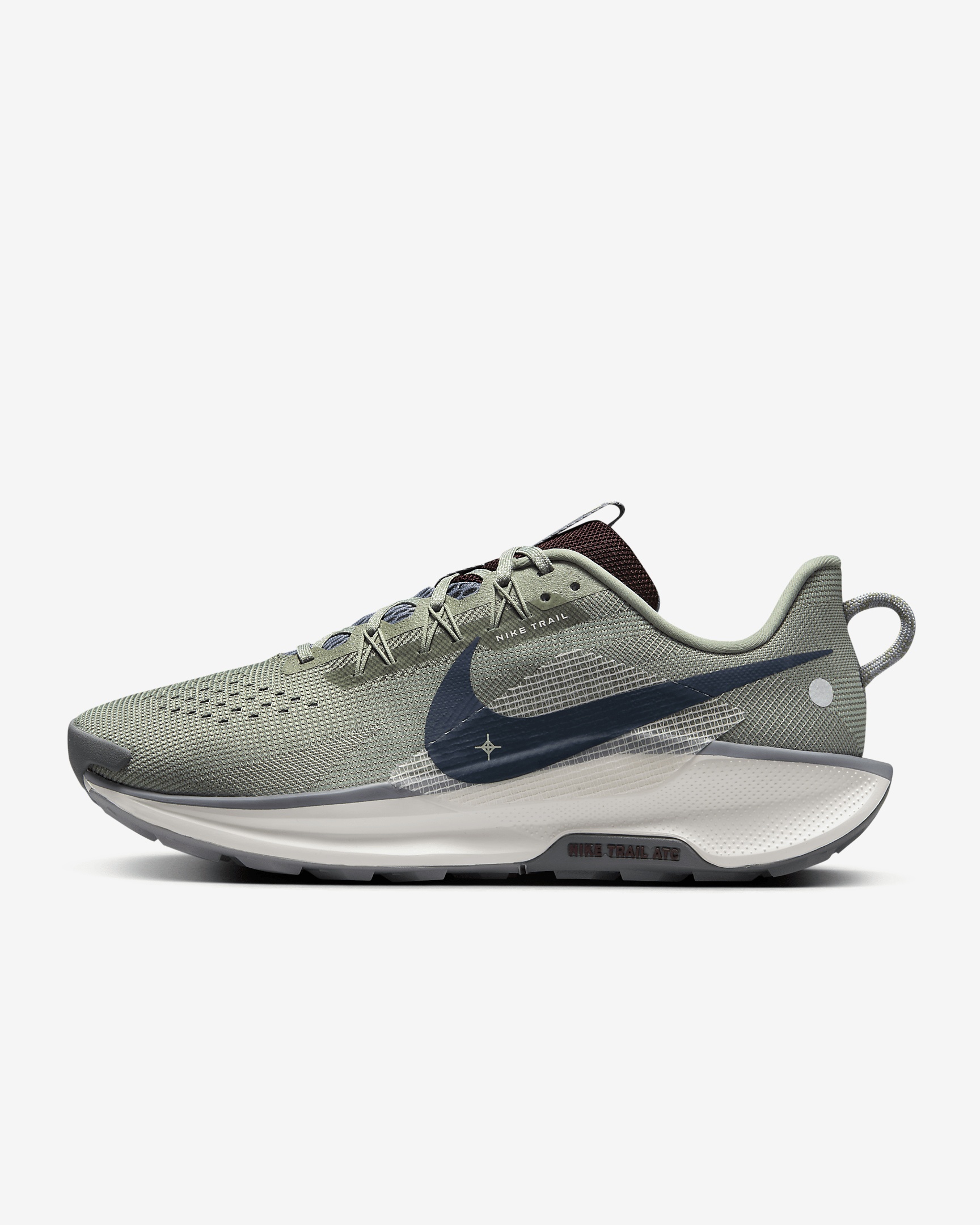 Spread your wings and see what nature brings as you chase earthy paths in the Peg Trail 5. Now equipped with an ultra-responsive ReactX foam midsole, this shoe is a true dual threat raring to cross the divide between dirt and drives. Product Details - Weight: Approx. 300 g/10.5 oz (Men's US 10) - Heel-to-toe drop: 9.5 mm - Reflective details - Not intended for use as Personal Protective Equipment (PPE) - Shown: Jade Horizon/Cement Grey/Phantom/Armory Navy - Style: DV3864-300 SIZE & FIT Fits small; we recommend ordering a half size up