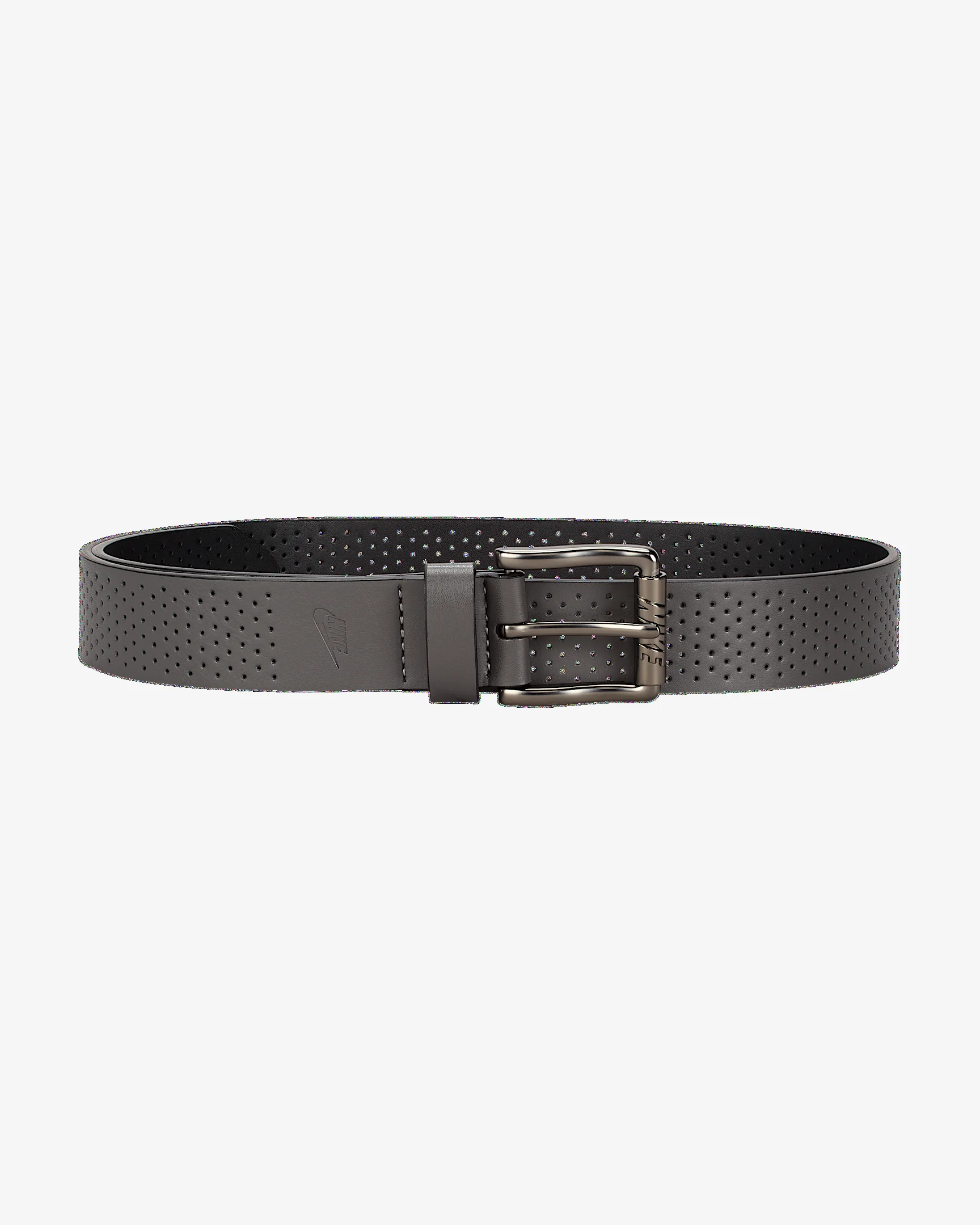 Stay cool and keep your style on point. This perforated belt offers light weight and breathability, with a durable roller buckle for quick adjustments through all your moves. Product Details - Embossed Nike Futura logo - Width: 38mm - 100% polyurethane - Spot clean - Imported - Shown: Light Smoke Grey - Style: 180180-050