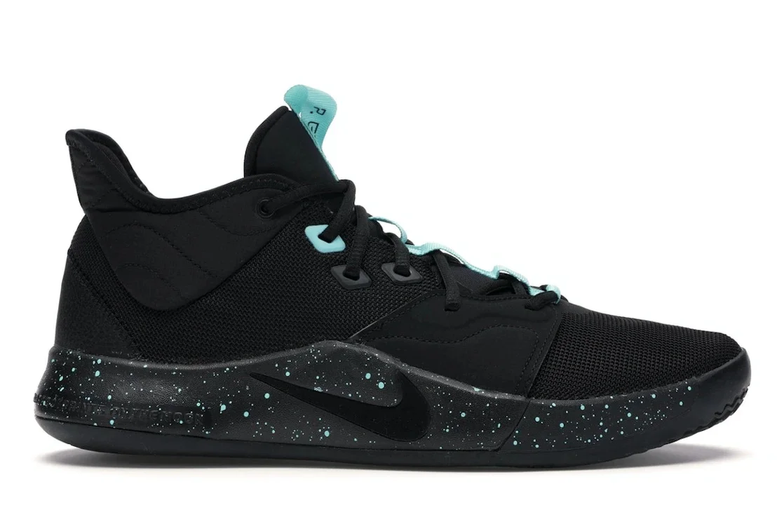 The Nike PG 3 Diamond is a limited-edition sneaker, designed in collaboration with National Basketball Association player Paul George, that draws inspiration for its basketball-centric features from George’s experiences in the game. These sneakers incorporate Nike's highly renowned Flywire technology into their upper, over which they employ a lightweight cable lacing system. Innovative Zoom Air units are installed in both the forefoot and the heel, while the rubber outsole offers a multidirectional tread pattern. Durable ripstop material is used to create a padded collar for the ankle. What our experts agree is one of the defining characteristics of the Nike PG 3 Diamond, however, is the light aqua, iridescent accents that resemble the facets of a diamond on the shoe’s sole. This feature adds visual intrigue to an otherwise sleek, black body. These shoes first released on October 1, 2019, with a price tag of $110. - Style AO2607-006 / AO2608-006 - Colorway Black/Black-Light Aqua - Retail Price 110 - Release Date 2019-10-01 - Featured false - Product Line Nike PG