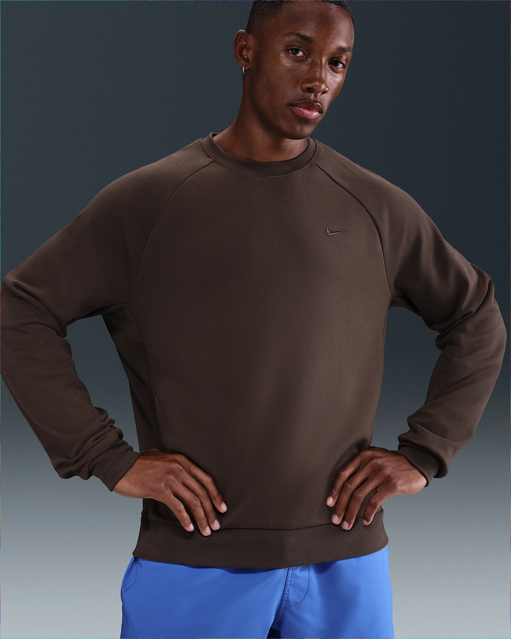 This soft, sweat-wicking crew is built for wearing during your toughest workouts. It's made with midweight double-knit fabric that feels smooth on both sides with a touch of stretch. Plus, the fabric helps block UV rays when you're outdoors. More Benefits - This product provides UVA and UVB protection from the sun in the areas covered by the garment. To protect exposed areas, the use of good quality sunscreen is recommended. Product Details - Ribbed collar, cuffs and hem - 78% polyester/22% cotton - Machine wash - Imported - Shown: Baroque Brown/Baroque Brown - Style: FZ0971-237 SIZE & FIT Model is wearing size M and is 5′11″179cm Standard fit: easy and traditional