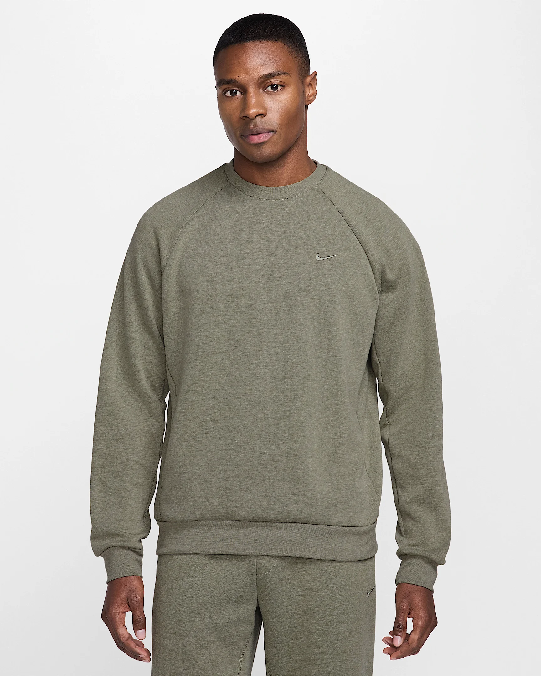 This soft, sweat-wicking crew is built for wearing during your toughest workouts. It's made with midweight double-knit fabric that feels smooth on both sides with a touch of stretch. Plus, the fabric helps block UV rays when you're outdoors. More Benefits - This product provides UVA and UVB protection from the sun in the areas covered by the garment. To protect exposed areas, the use of good quality sunscreen is recommended. Product Details - Ribbed collar, cuffs and hem - 78% polyester/22% cotton - Machine wash - Imported - Shown: Light Army/Heather/Light Army - Style: FZ0971-320 SIZE & FIT Model is wearing size M and is 6′0″183cm Standard fit: easy and traditional