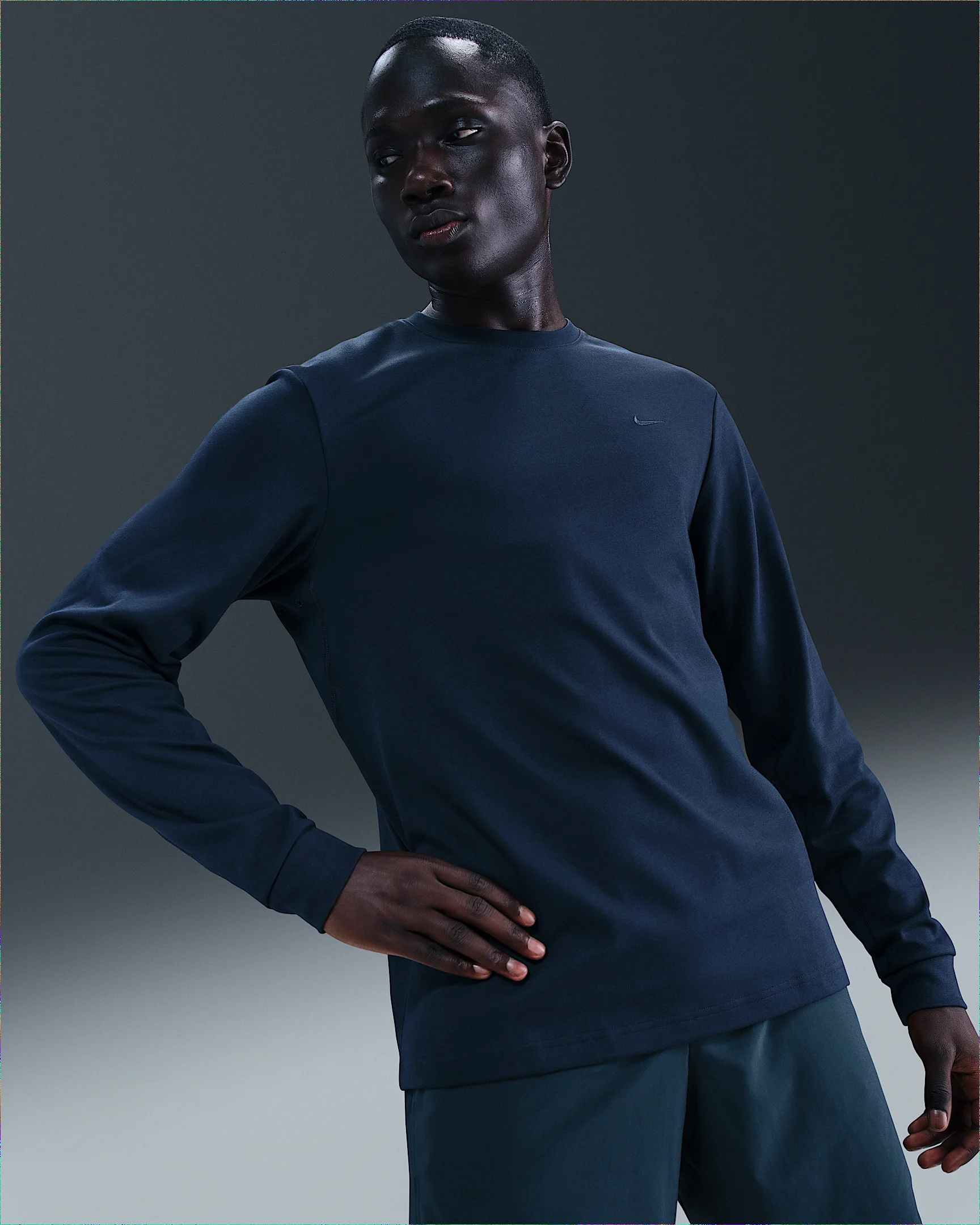 From weekly errands to workout classes to impromptu meetups with friends, life is a balance. Stay active and do it all with the Primary Top. Soft knit fabric (with eyelets for ventilation) helps you feel fresh all day. Nike Dri-FIT technology moves sweat away from your skin for quicker evaporation, helping you stay dry and comfortable. Benefits - Soft knit fabric is lightweight and breathable. - Embroidered eyelets provide extra breathability. Product Details - Ribbed collar and cuffs - Embroidered Swoosh logo at chest - Body: 60-62% cotton/38-40% polyester. Rib: 97-100% cotton/0-3% spandex. - Material percentages may vary. Check label for actual content. - Machine wash - Imported - Shown: Obsidian/Obsidian - Style: FB8585-451 SIZE & FIT Model is wearing size M and is 6′1″184cm Standard fit: easy and traditional