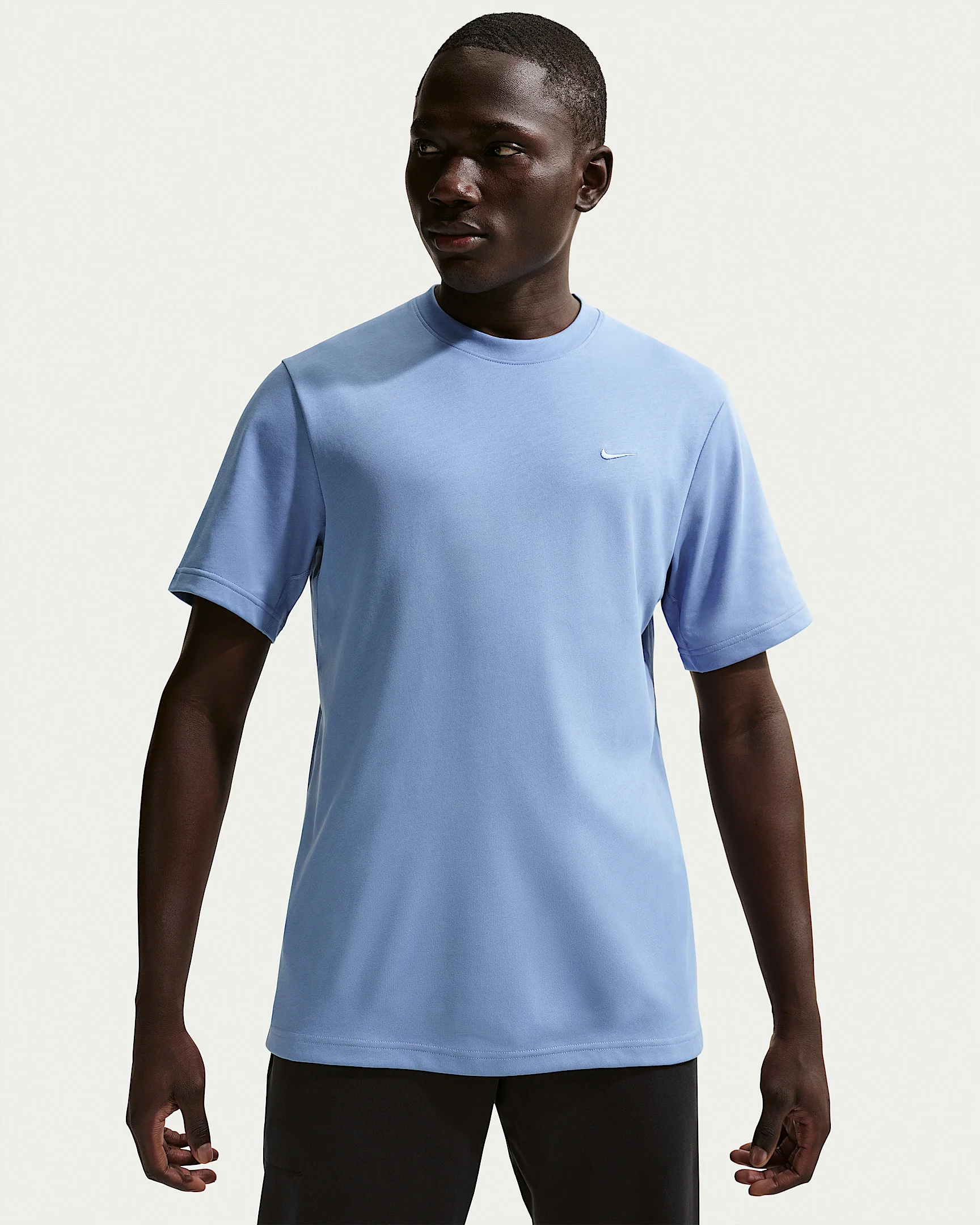 Run, spin, lift, stretch—no matter where your workout takes you, we have you covered in the sweat-wicking Primary Top. We designed it to be soft and comfortable, with underarm ventilation to help keep you cool during your reps. Benefits - Nike Dri-FIT technology moves sweat away from your skin for quicker evaporation, helping you stay dry and comfortable. - Knit fabric feels buttery soft. - Embroidered underarm eyelets help increase ventilation to keep you cool. - Underarm gusset increases mobility in a high-friction area. Product Details - Embroidered Swoosh - Ribbed neckband - 60-62% cotton/38-40% polyester - Material percentages may vary. Check label for actual content. - Machine wash - Imported - Shown: Work Blue/Work Blue - Style: DV9831-486 SIZE & FIT Model is wearing size M and is 6'1"184cm Standard fit: easy and traditional