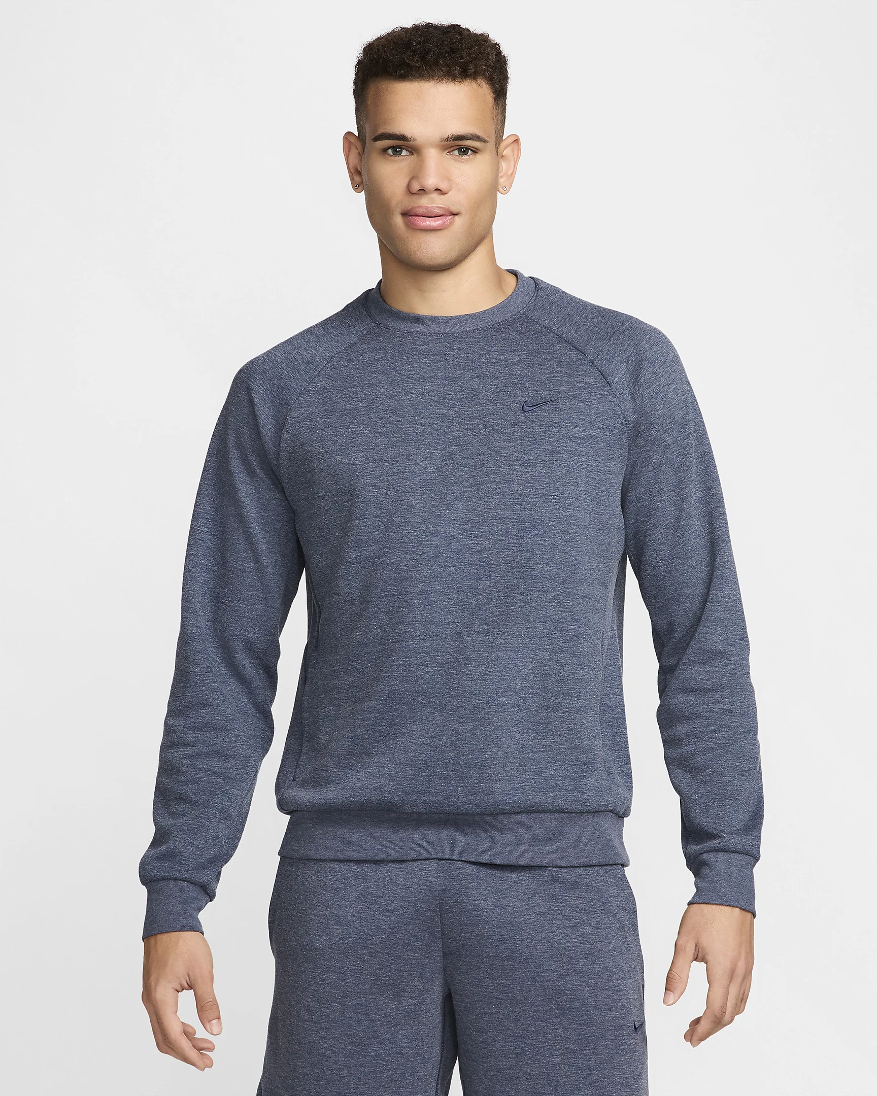 This soft, sweat-wicking crew is built for wearing during your toughest workouts. It's made with midweight double-knit fabric that feels smooth on both sides with a touch of stretch. Plus, the fabric helps block UV rays when you're outdoors. More Benefits - This product provides UVA and UVB protection from the sun in the areas covered by the garment. To protect exposed areas, the use of good quality sunscreen is recommended. - Flat seams help prevent chafing. Product Details - Ribbed collar, cuffs and hem - 78% polyester/22% cotton - Machine wash - Imported - Shown: Obsidian/Heather/Obsidian - Style: FZ0971-473 SIZE & FIT Model is wearing size M and is 6′3″191cm Big & Tall model is wearing size 3XL and is 6'5"196cm Standard fit: easy and traditional