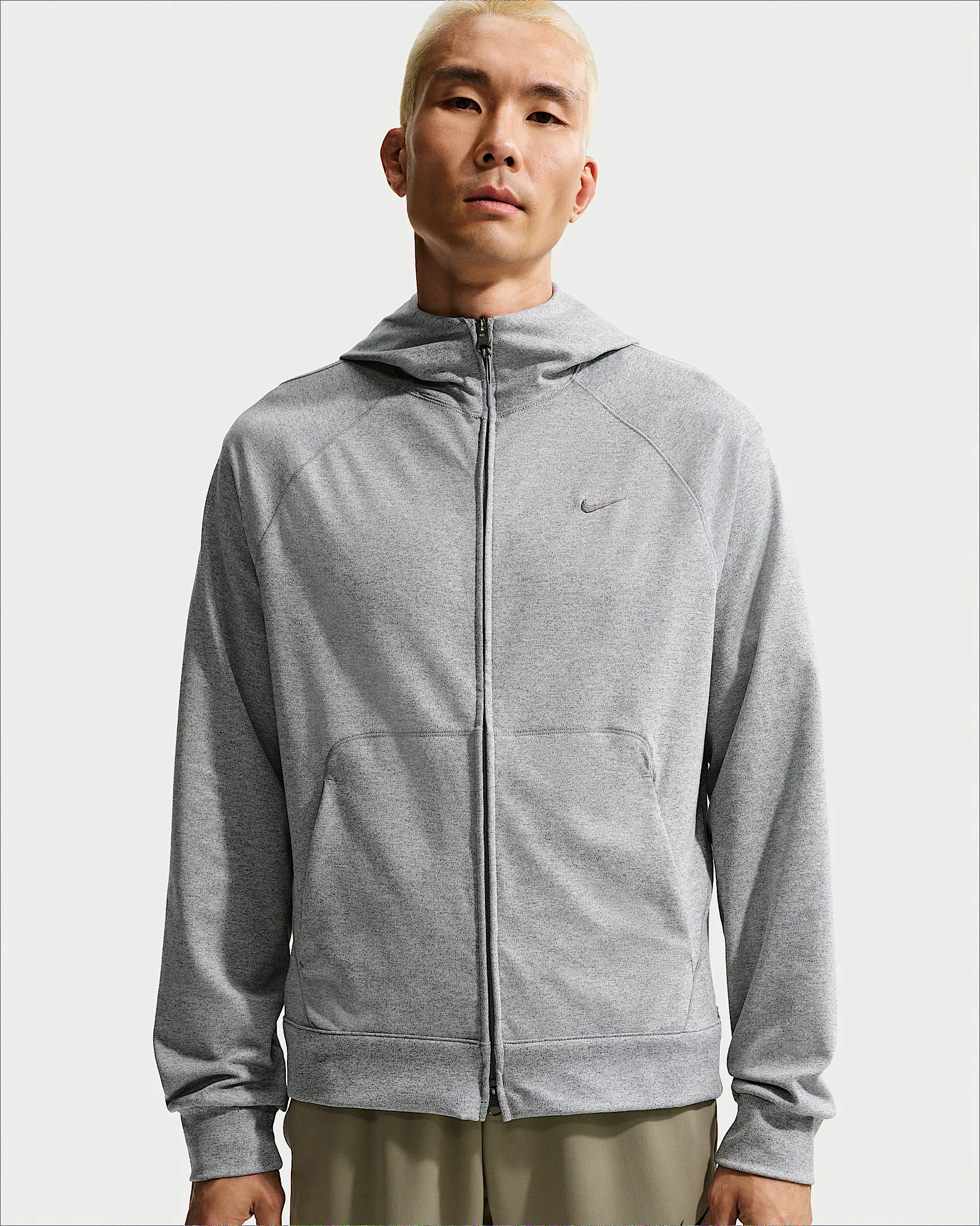 Move through your workout and into your day with this versatile hoodie. Named for its superfine yarns and tight-knit construction, our stretchy NanoKnit fabric is lightweight and ultrasoft. We paired it with our sweat-wicking tech and UV protection to make this layer a performance essential. Benefits - Nike Dri-FIT technology moves sweat away from your skin for quicker evaporation, helping you stay dry and comfortable. - Embroidered underarm eyelets add ventilation to help you stay cool. - Modified raglan-style sleeves allow for a full range of motion. - Low-profile seams add softness. Product Details - Side pockets - Embroidered Swoosh logo - Body: 90% polyester/10% spandex. Hood lining: 75% polyester/13% cotton.12% rayon. - Machine wash - Imported - This product provides UVA and UVB protection from the sun in the areas covered by the garment. To protect exposed areas, the use of good quality sunscreen is recommended. - Shown: Smoke Grey/Heather/Smoke Grey - Style: II1308-085 SIZE & FIT Model is wearing size M and is 6′1″185cm Standard fit: easy and traditional