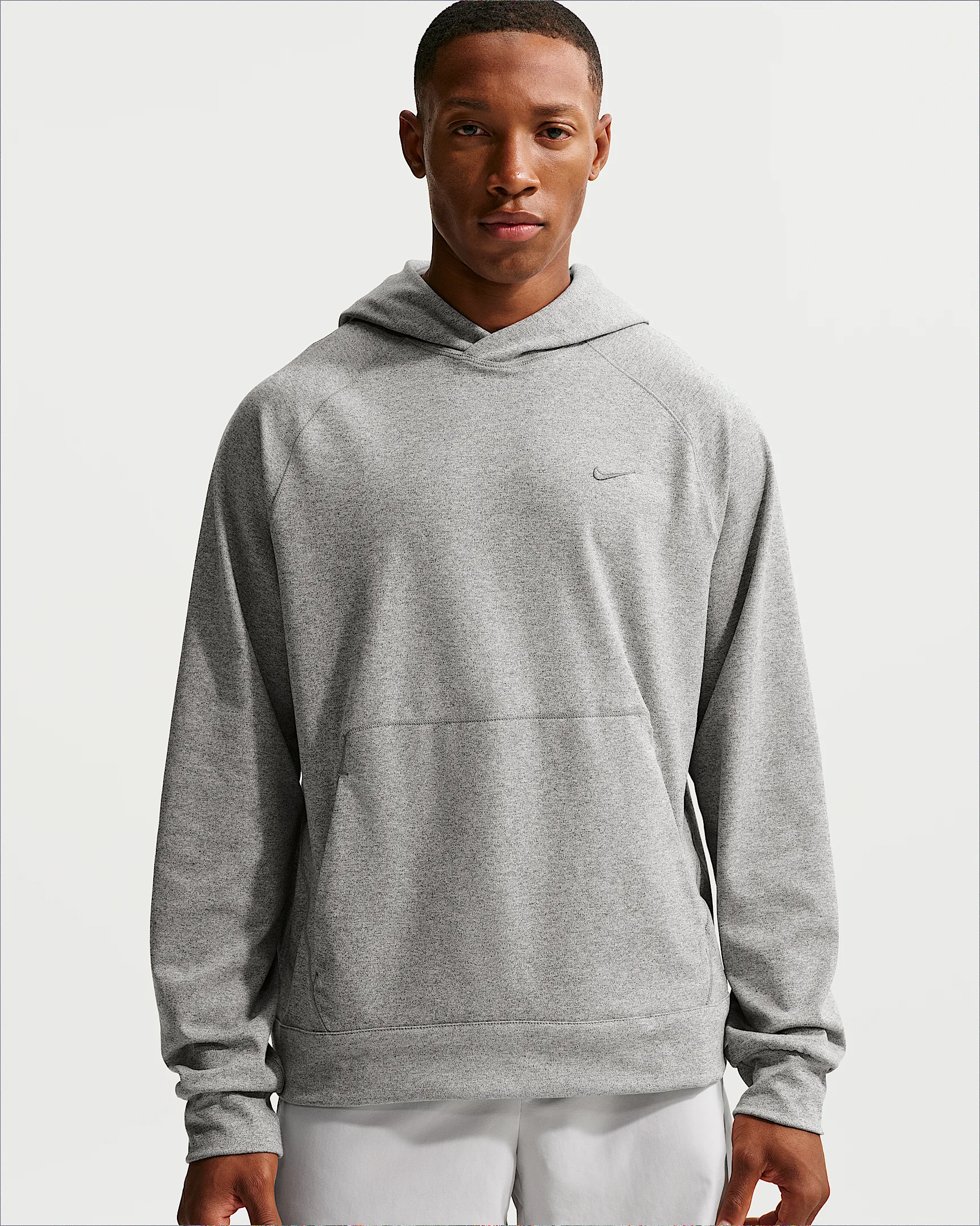Move through your workout and into your day in this versatile hoodie. Named for its superfine yarns and tight-knit construction, our stretchy NanoKnit fabric is lightweight and ultrasoft. We paired it with our sweat-wicking tech and UV protection to make this layer a performance essential. Benefits - Nike Dri-FIT technology moves sweat away from your skin for quicker evaporation, helping you stay dry and comfortable. - Front pouch pocket contains a smaller media pocket for added storage. - Embroidered underarm eyelets add ventilation to help you stay cool. - Modified raglan-style sleeves allow for a full range of motion. - Low-profile seams add softness. Product Details - Embroidered Swoosh logo - Body: 90% polyester/10% spandex. Hood lining: 75% polyester/13% cotton/12% rayon. - Machine wash - Imported - This product provides UVA and UVB protection from the sun in the areas covered by the garment. To protect exposed areas, the use of good quality sunscreen is recommended. - Shown: Smoke Grey/Heather/Smoke Grey - Style: II1304-085 SIZE & FIT Model is wearing size M and is 5′11″179cm Standard fit: easy and traditional