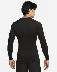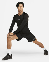 The Nike Pro collection is designed to help you feel confident pushing your limits, no matter how far along your exercise journey you are. This slim-fitting long-sleeve top has a smooth and stretchy feel perfect for high-intensity sports and activity. Extended hems in the front and back allow you to be comfortable while wearing the top tucked or untucked. Product Details - 90% polyester/ 10% spandex - Machine wash - Imported - Shown: Black/White - Style: FB7919-010 SIZE & FIT Model is wearing size M and is 6′2″188cm Tight fit: snug and form-fitting