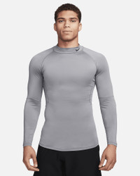 The Nike Pro collection is all about feeling confident doing your best, no matter where you are on your workout journey. This slim-fitting mock-neck top has a smooth and stretchy feel for the sports and activities you love. Nike Dri-FIT technology moves sweat away from your skin for quicker evaporation, helping you stay dry and comfortable. An extended hem allows you to tuck in the shirt more securely or have improved coverage when it's untucked. Product Details - Mock-neck design - 90% polyester/10% spandex - Machine wash - Imported - Shown: Smoke Grey/Black - Style: FB7908-084 SIZE & FIT Model is wearing size M and is 6′1″185cm Tight fit: snug and form-fitting