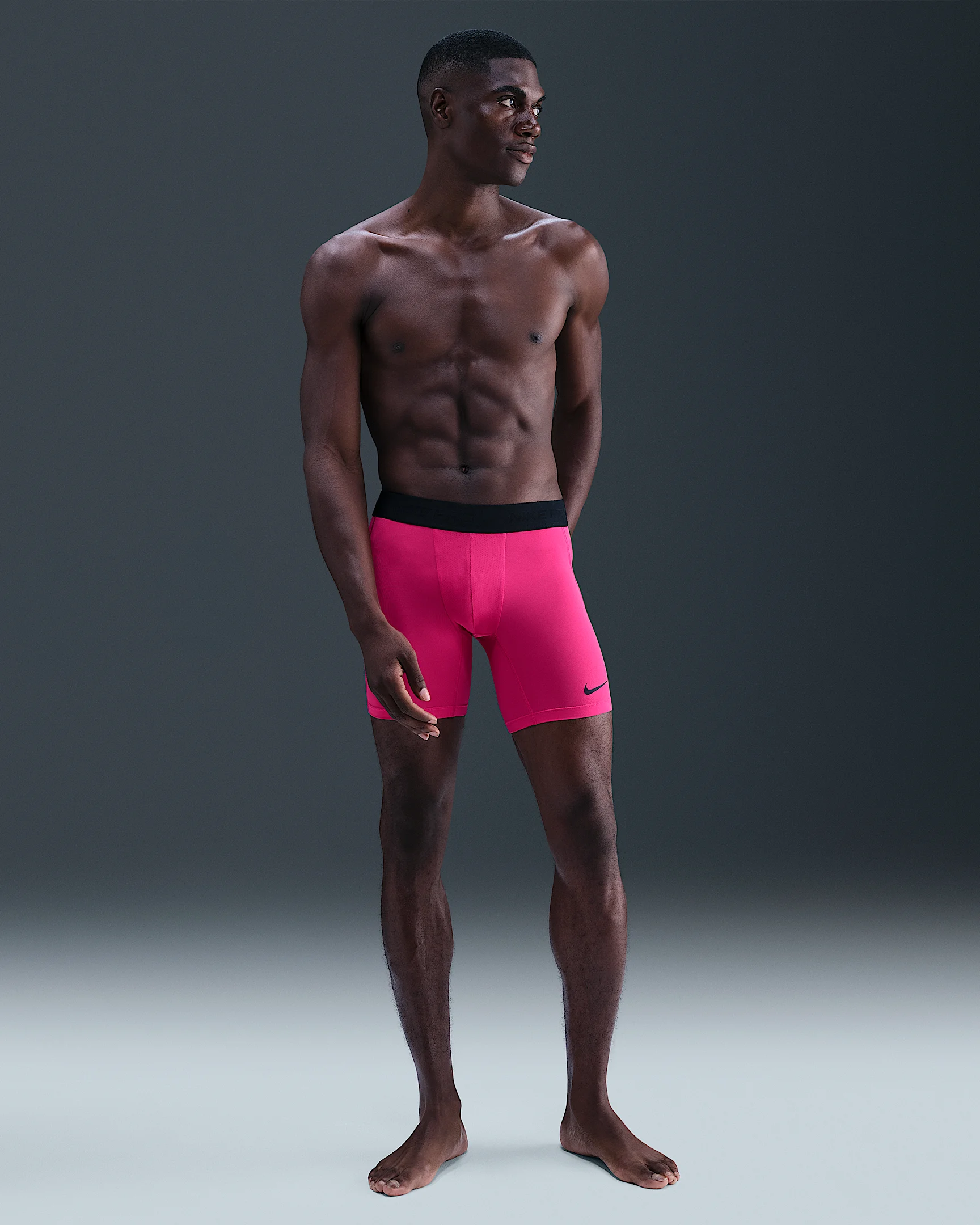 The Nike Pro collection is about feeling confident in trying your best. These shorts have a smooth and stretchy feel that's made to perform for all your favorite sports and exercises. Benefits - Nike Dri-FIT technology moves sweat away from your skin for quicker evaporation, helping you stay dry and comfortable. - Stretchy knit fabric gives a body-hugging feel so you can move naturally through your workouts and exercises. - Soft and stretchy waistband sits snug above your hips. - Side pocket helps store a small item, like your keys and card. Product Details - Body: 90% polyester/ 10% spandex. Mesh: 92% polyester/ 8% spandex. Elastic: 58% polyester/28% nylon/ 14% spandex. - Machine wash - Imported - Shown: Rush Pink/Black - Style: FB7958-666 SIZE & FIT Model is wearing size M and is 6′1″185cm Tight fit: snug and form-fitting