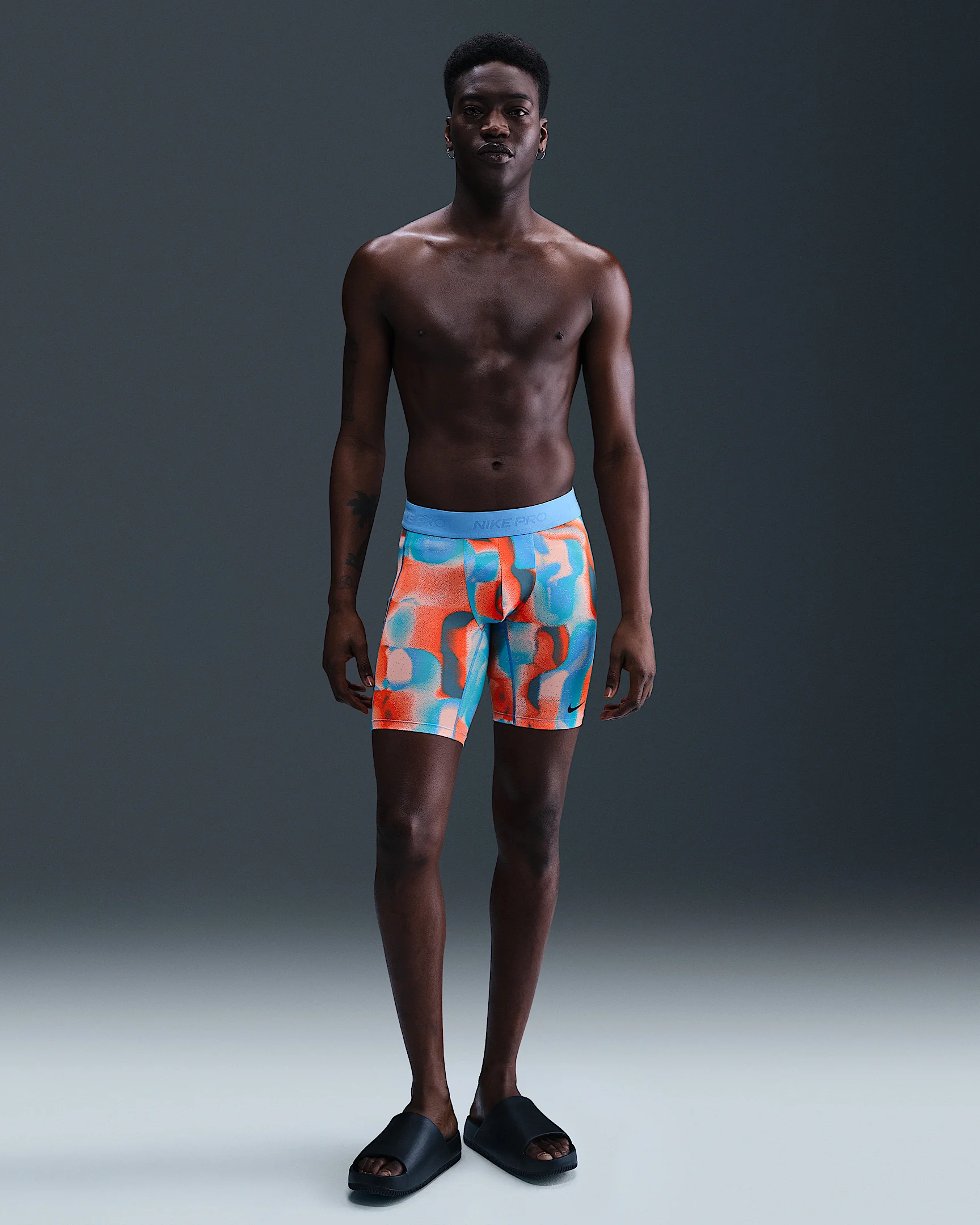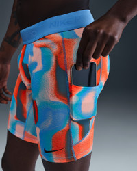 Built to train, the Nike Pro shorts offer a layer of colorful coverage and support. They have a smooth, body-hugging feel and flat seams that help reduce chafing. Benefits - Nike Dri-FIT technology moves sweat away from your skin for quicker evaporation, helping you stay dry and comfortable. - Smooth, stretchy fabric hugs your body for a distraction-free feel. - Soft and stretchy waistband sits snug above your hips. - Drop-in side pockets keep your essentials easy to reach. Product Details - Heat-wave print - Body/Panels lining: 90% polyester/10% spandex. Elastic: 58% polyester/28% nylon/14% spandex. - Machine wash - Imported - Shown: Washed Coral/University Blue/Black - Style: HQ0223-664 SIZE & FIT Model is wearing size M and is 6′3″189cm Tight fit: snug and form-fitting