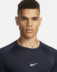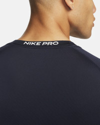The Nike Pro collection is designed to help you feel confident pushing your limits, no matter how far along your exercise journey you are. This slim-fitting long-sleeve top has a smooth and stretchy feel perfect for high-intensity sports and activity. Extended hems in the front and back allow you to be comfortable while wearing the top tucked or untucked. Product Details - 90% polyester/ 10% spandex - Machine wash - Imported - Shown: Obsidian/White - Style: FB7919-451 SIZE & FIT Model is wearing size M and is 6′3″191cm Tight fit: snug and form-fitting