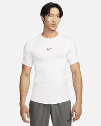 The Nike Pro collection is all about giving you the confidence to push past your personal goals. This slim-fitting top has a smooth and stretchy feel that suits your favorite sports and exercises. Plus, it offers a rounded hem for extra coverage or a secure feel when you tuck it into your bottoms. Product Details - 90% polyester/10% spandex - Machine wash - Imported - Shown: White/Black - Style: FB7932-100 SIZE & FIT Model is wearing size M and is 6′2″188cm Tight fit: snug and form-fitting