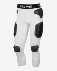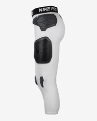 The Nike Pro HyperStrong tights integrate protective panels and foam padding into lightweight form-fitting fabric for enhanced impact absorption. Product Details - Flat seams - Elastic waistband - Body: 78% polyester/22% spandex. Panels/center front panel/center front lining: 82% polyester/18% spandex. Pad: 100% ethylene vinyl acetate. Plate: 100% polyethylene. - Machine wash - Imported - Shown: White - Style: N1013486-153