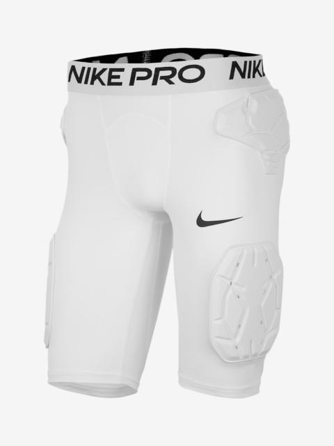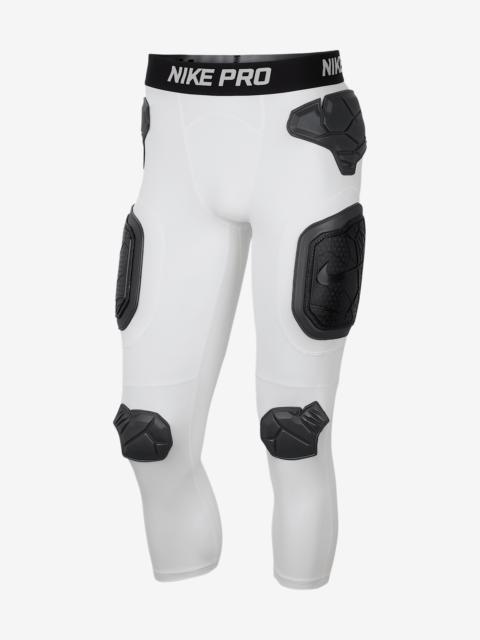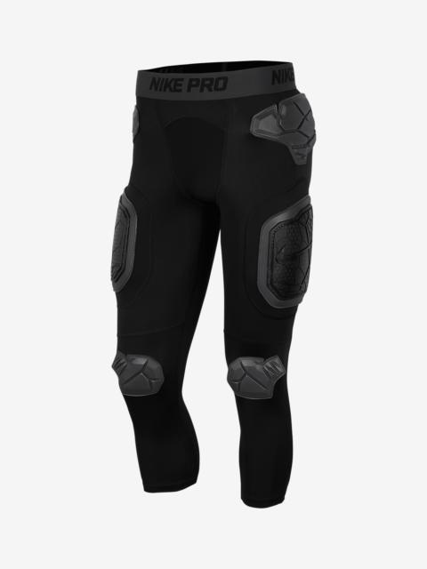 The Nike Pro HyperStrong shorts integrate protective panels and foam padding into lightweight form-fitting fabric for enhanced impact absorption. Product Details - Flat seams - Elastic waistband - Body: 78% polyester/22% spandex. Panels/center front panel/center front lining: 82% polyester/18% spandex. Pad: 100% EVA. Plate: 100% polyethylene. - Machine wash - Imported - Shown: White - Style: N1013489-153