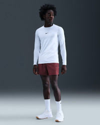The 6” Nike Pro shorts deliver a smooth, stretchy feel with sweat-wicking Dri-FIT technology to help you stay focused through every rep. Benefits - Nike Dri-FIT technology moves sweat away from your skin for quicker evaporation, helping you stay dry and comfortable. - Zippered pockets and an interior pocket fit your necessities. - Flat elastic waistband with internal drawcord provides a secure fit. - Breathable mesh gusset panel boosts airflow and allows natural movement. - Mesh panels on the upper back and sides enhance breathability for cool, comfortable training. Product Details - 6" inseam - Body: 89% polyester/11% spandex. Mesh: 100% polyester. - Machine wash - Imported - Shown: Dark Team Red/Black - Style: HV0411-619 SIZE & FIT Model is wearing size M and is 6′0″183cm Standard fit: easy and traditional