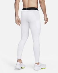 No need to rethink your work out when the cold weather hits. The Nike Pro Warm collection is about feeling confident being your best—even when the mercury starts to drop. These full-length tights are made with soft and stretchy French terry fabric, plus breathable panels around the knee. More Benefits - Side pockets help store small items, like a card or keys. - Soft and stretchy waistband snugly sits above your hips. Product Details - Body: 88% polyester/ 12% spandex. Mesh: 92% polyester/ 8% spandex. - Machine wash - Imported - Shown: White/Black - Style: FB7961-100 SIZE & FIT Model is wearing size M and is 6′2″188cm Tight fit: snug and form-fitting