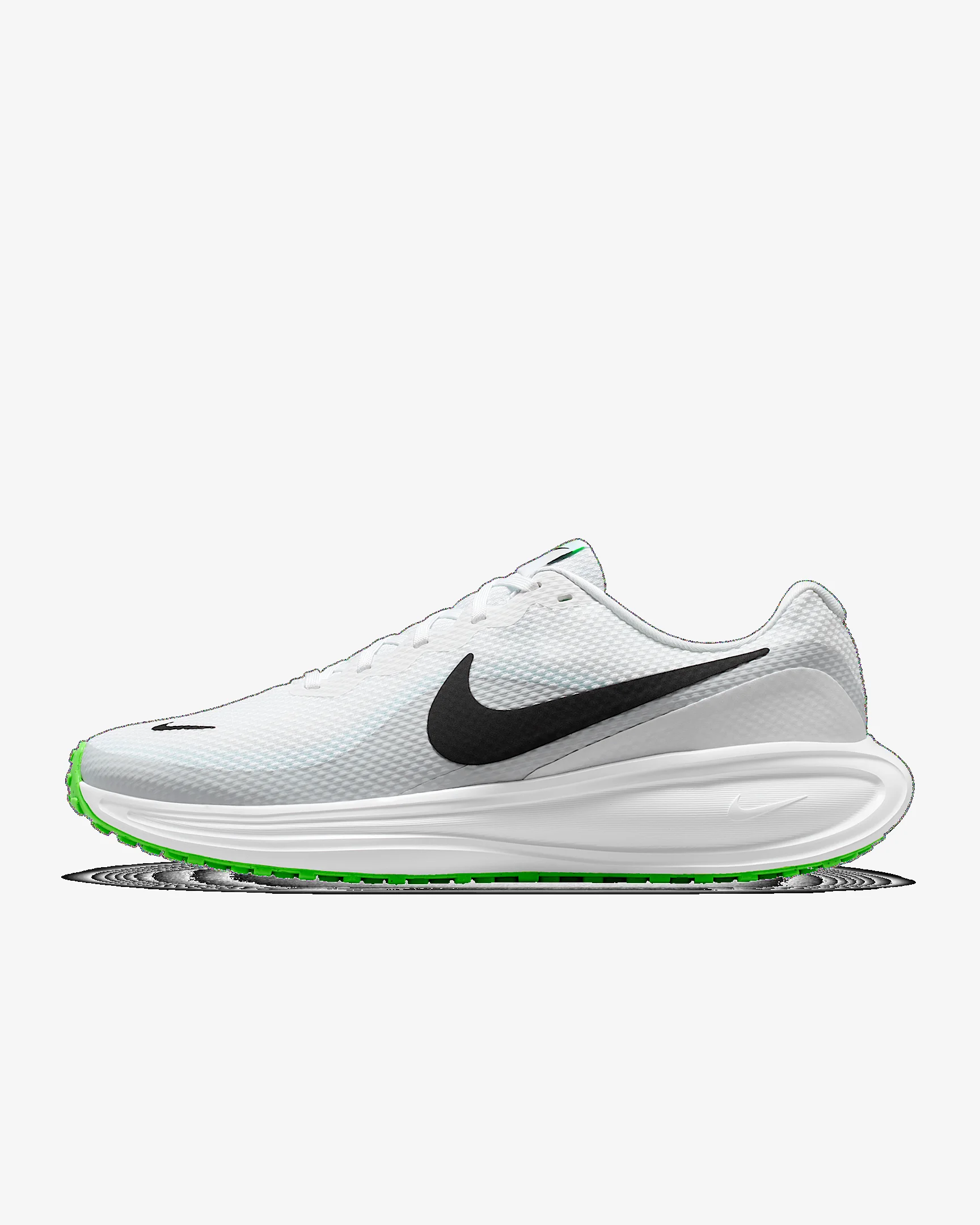 The Revolution 8 is an evolution of your faithful favorite. Every stride is cushioned thanks to a foam midsole and a flexible forefoot that makes your steps soft. Plus, the mesh upper is even more breathable than the previous iteration, so you can run in cool, collected comfort. Product Details - Weight: Approx. 292g/10.3oz (Men's US 10) - Heel-to-toe drop: 10mm - Shown: White/Pure Platinum/Glacier Blue/Black - Style: HJ9198-105