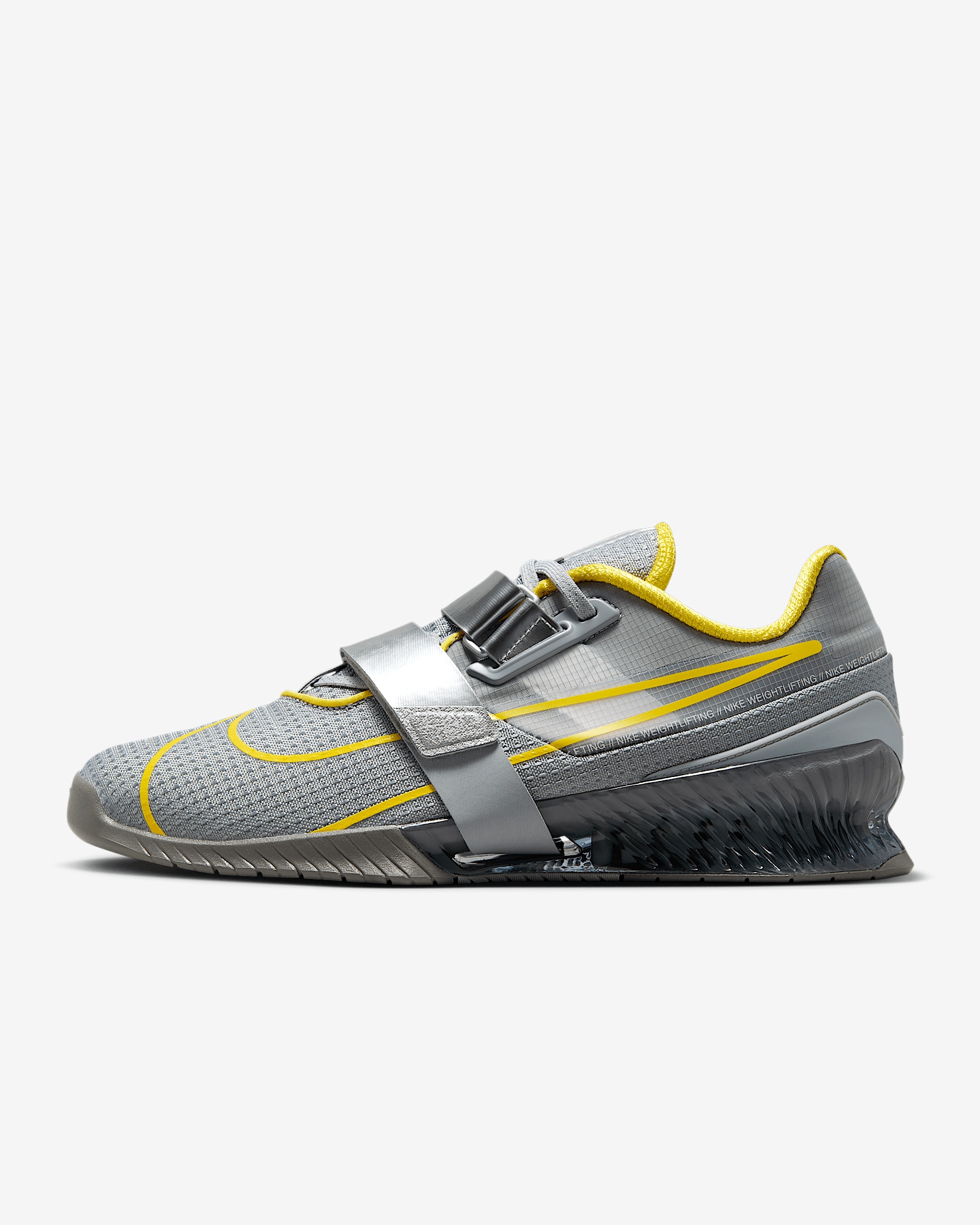 Designed for strength and stability, the Nike Romaleos 4 features a supportive midsole and a wide, flat outsole. Adjustable straps at the midfoot secure your foot during your most intense workouts. Product Details - Shown: Wolf Grey/Lightning - Style: CD3463-002 SIZE & FIT Fits small; we recommend ordering a half size up