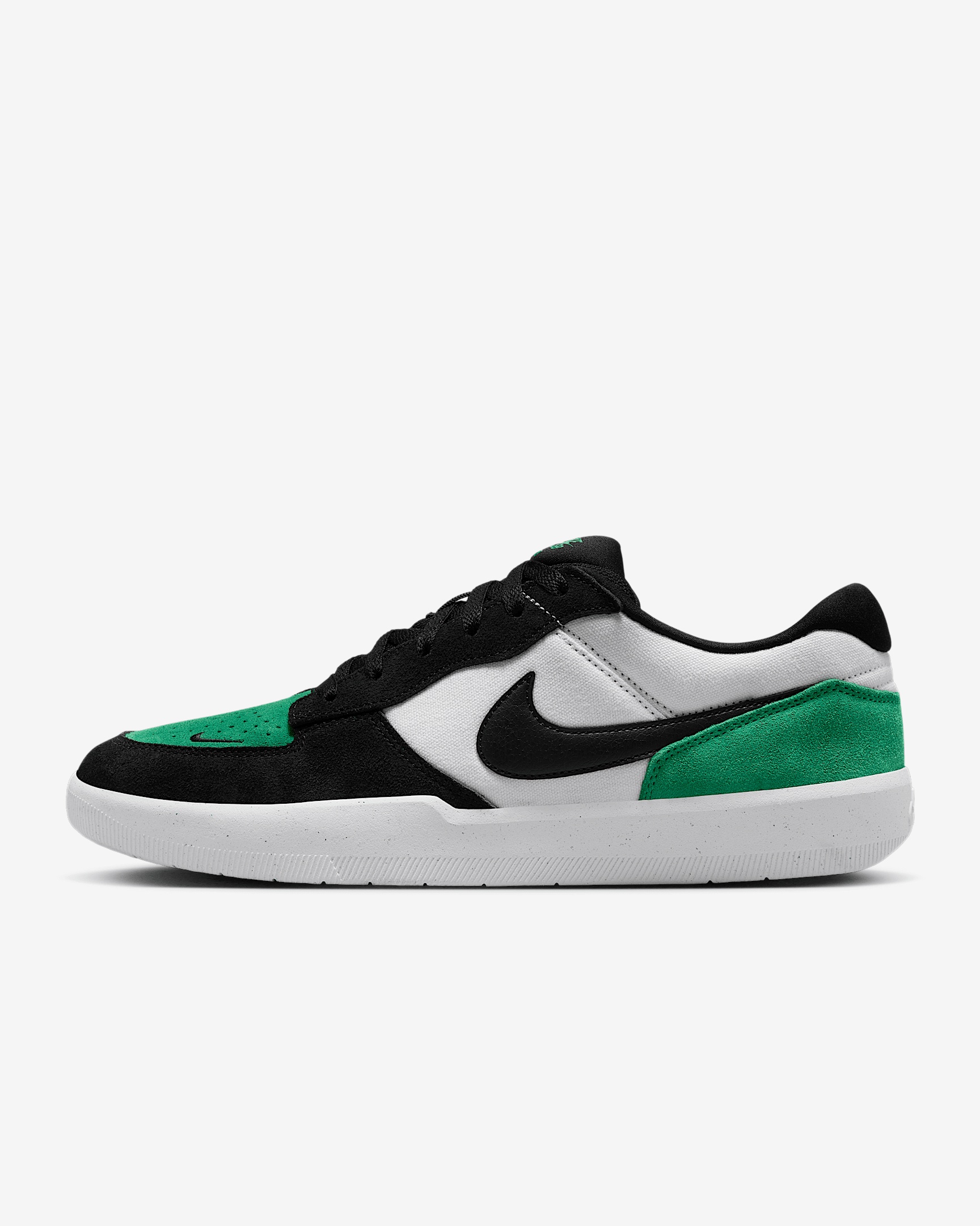 The latest and greatest innovation to hit the streets, the Force 58 gives you the durability of a cupsole with the flexibility of vulcanized shoes. Made from canvas and suede and finished with perforations on the toe, the whole look is infused with heritage basketball DNA. Benefits - Suede and canvas are the perfect pairing of durability and breathability. - Perforations and Swoosh on the toe are a nod to heritage basketball styles. - Rubber sole has a full cupsole stitch for exceptional durability. - Tri-star shapes on the sole expand and contract for better grip and boardfeel right out of the box. - Stretchy inner gusset hugs your foot to help keep your shoe on if your laces blow out. Product Details - Shown: White/Stadium Green/White/Black - Style: DV5477-101 SIZE & FIT Fits small; we recommend ordering a half size up