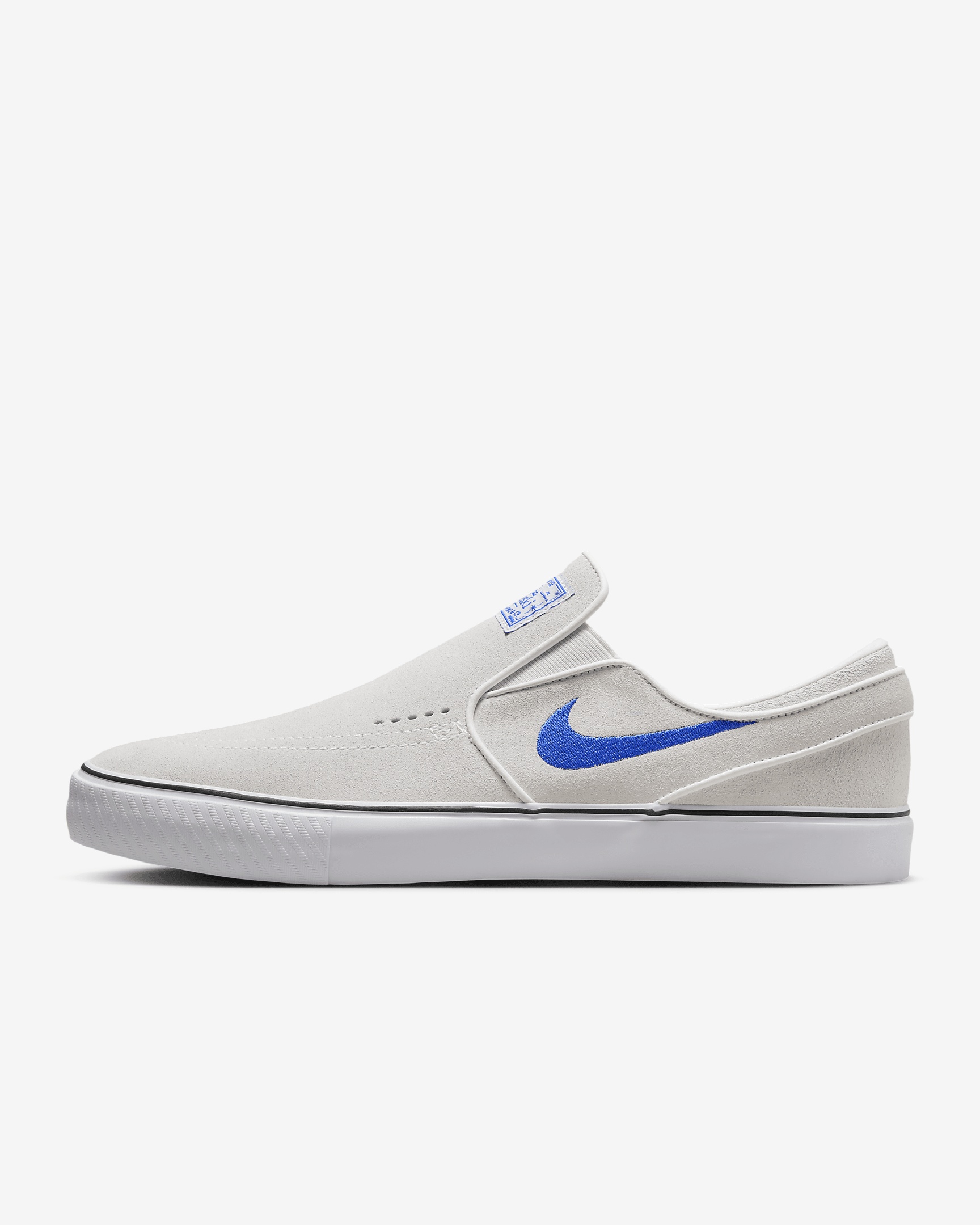 Slip into the next evolution of the Janoski+. None of the laces, all of the classic support. The skate-specific tread delivers great board feel and flick, while reengineered last gives you better fit and comfort—opening the door for next-level performance. Benefits - Suede upper is soft and durable. - Vulcanized construction fuses the sole to the upper for a flexible, broken-in feel. - Snappy and responsive, Zoom Air cushioning helps provide a quick-off-the-ground sensation. Product Details - Shown: Summit White/Summit White/White/Hyper Royal - Style: FN5893-101