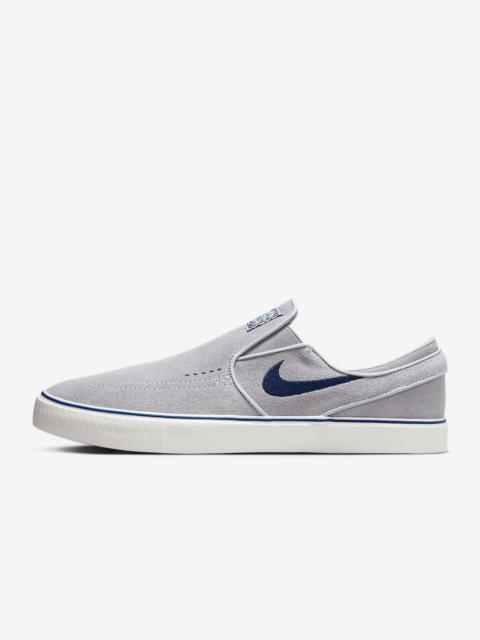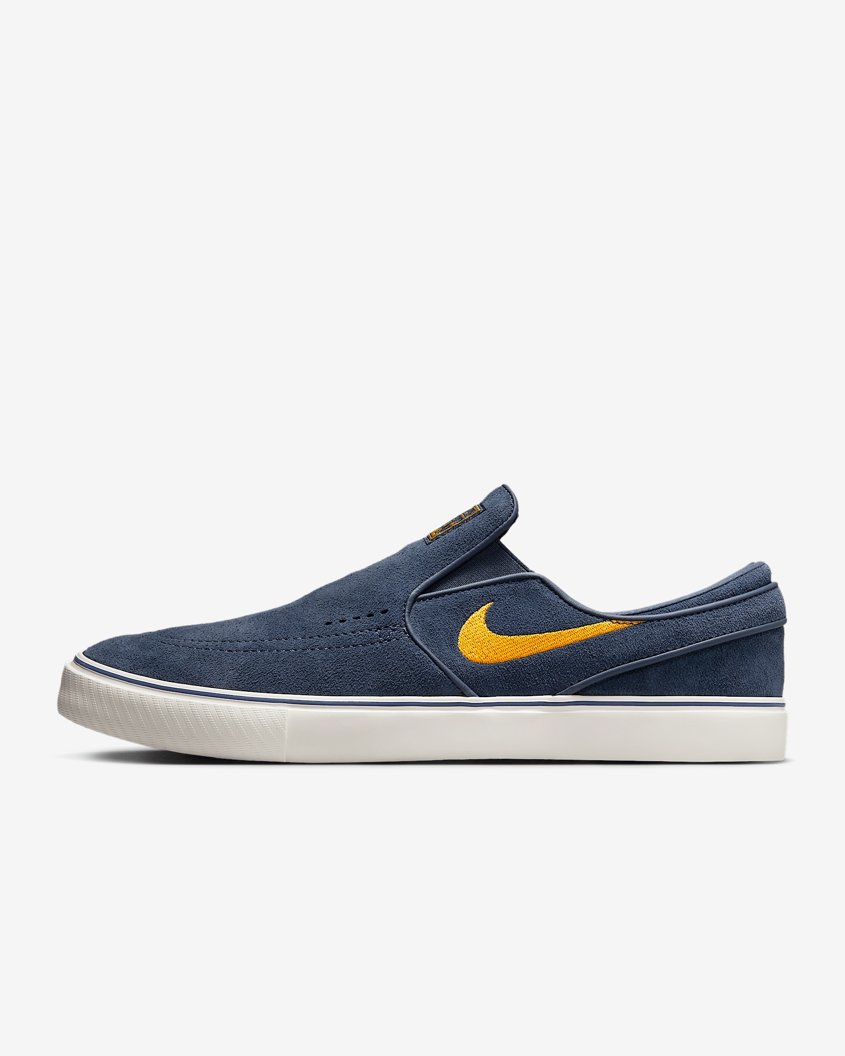 Slip into the next evolution of the Janoski+. None of the laces, all of the classic support. The skate-specific tread delivers great board feel and flick, while reengineered last gives you better fit and comfort—opening the door for next-level performance. Benefits - Suede upper is soft and durable. - Vulcanized construction fuses the sole to the upper for a flexible, broken-in feel. - Snappy and responsive, Zoom Air cushioning helps provide a quick-off-the-ground sensation. Product Details - Shown: Thunder Blue/Thunder Blue/Sail/Sundial - Style: FN5893-401